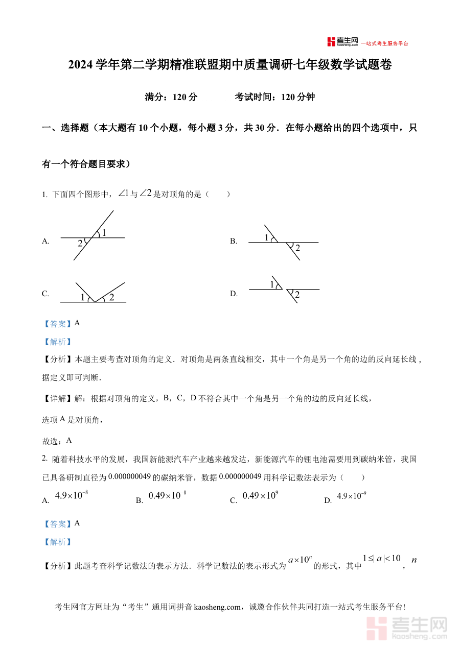 《精品解析:浙江省宁波市北仑区精准联盟2024-2025学年期中质量调研七年级下册数学试卷(解析版)》是针对2024-2025学年浙江省宁波市北仑区精准联盟组织的七年级下册数学期中质量调研考试的配套备考资料,结合该区域精准联盟的期中检测场景,为相关师生提供具有区域针对性的考试内容解析服务。