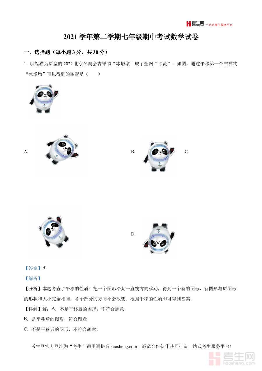 《精品解析:浙江省宁波市宁海县北片2021-2022学年七年级下学期期中数学试卷(解析版)》是针对浙江省宁波市宁海县北片区域2021至2022学年七年级下学期期中数学考试编制的备考资料,聚焦该阶段数学学科的期中检测需求,为使用者提供与本地考试实际贴合的参考内容。