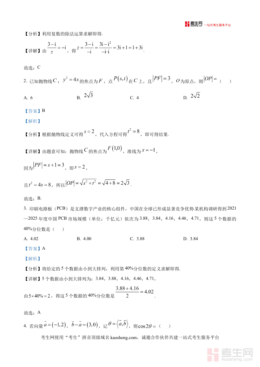 作为调研考试的解析版资料,它可用于考生对自身数学学习情况的阶段性诊断,帮助明确知识掌握的薄弱环节;同时也能为教师的教学规划与备考指导提供参考依据,辅助调整教学策略以适配学生实际学习需求,提升复习的效率与针对性。
