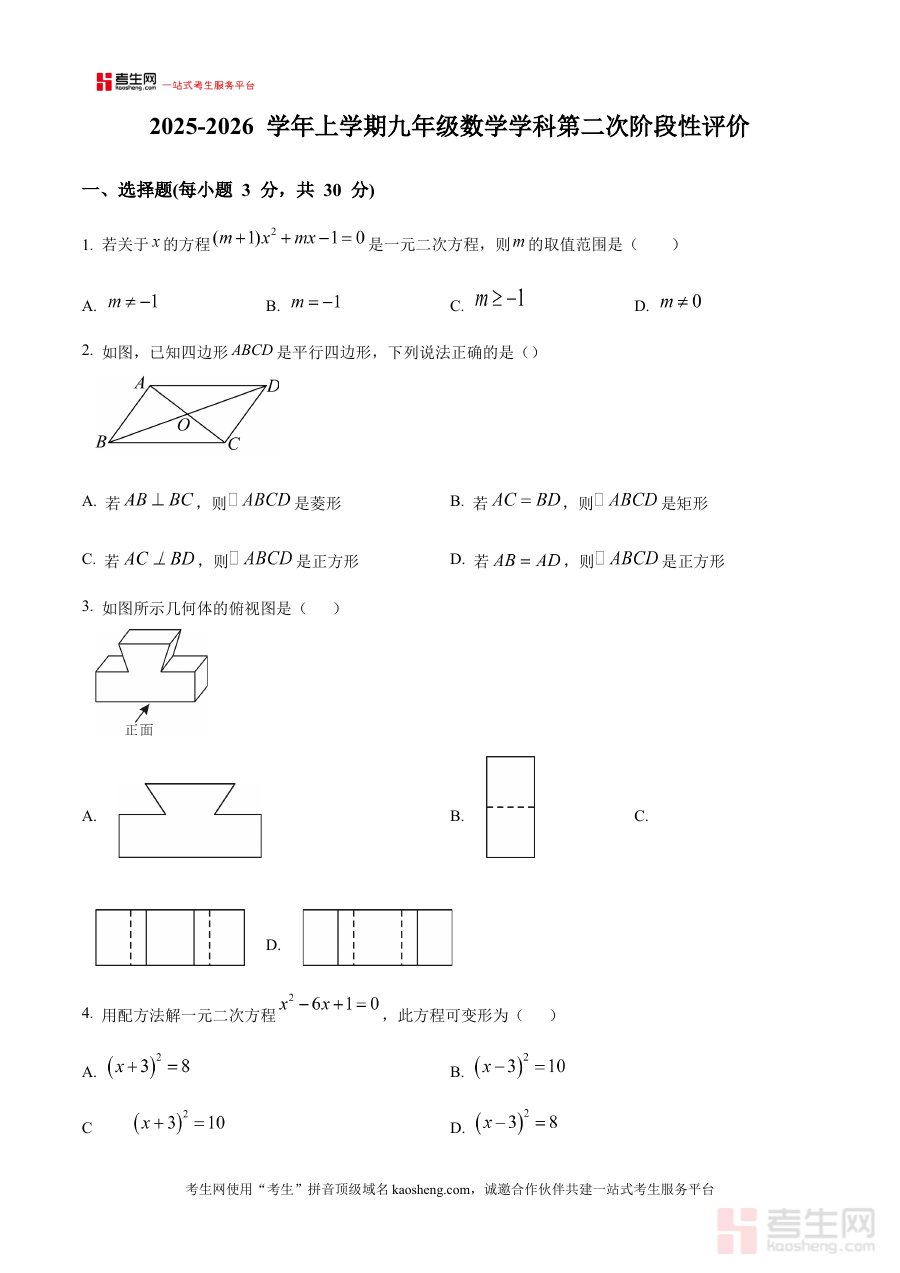 《精品解析:河南省郑州市郑中国际学校2025-2026学年上学期九年级期中数学试卷(原卷版)》是针对河南省郑州市郑中国际学校2025-2026学年上学期九年级期中数学考试设计的备考资料,聚焦该阶段数学学科的期中检测需求,为相关学习活动提供针对性支持。