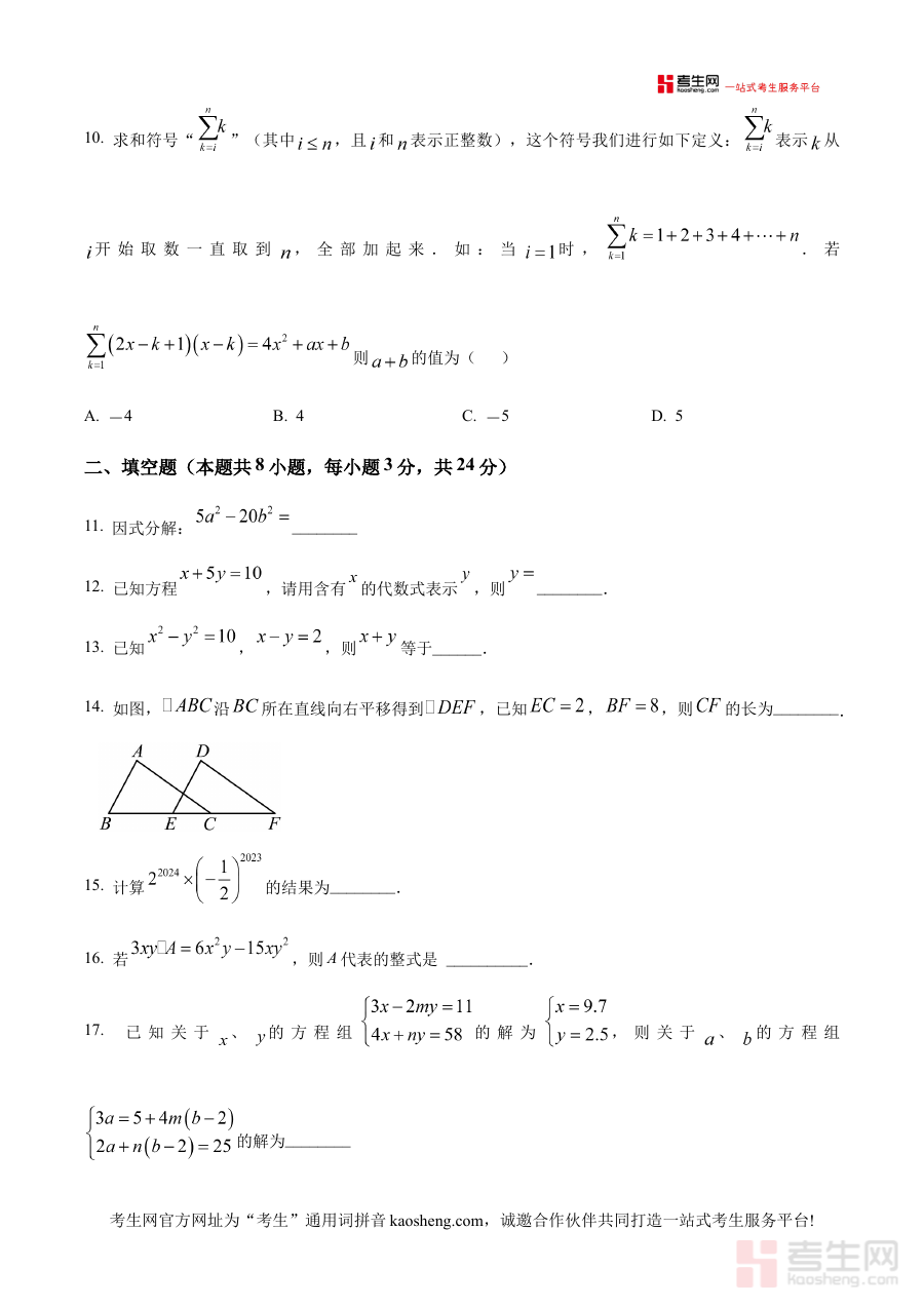 该资料可用于七年级学生进行阶段性学习成果的自我检测与学情诊断,帮助教师了解学生半学期内数学知识的掌握情况,也为教学团队调整后续教学计划、优化备考策略提供依据,助力使用者明确学习重点与薄弱环节。