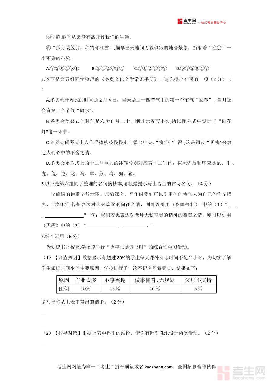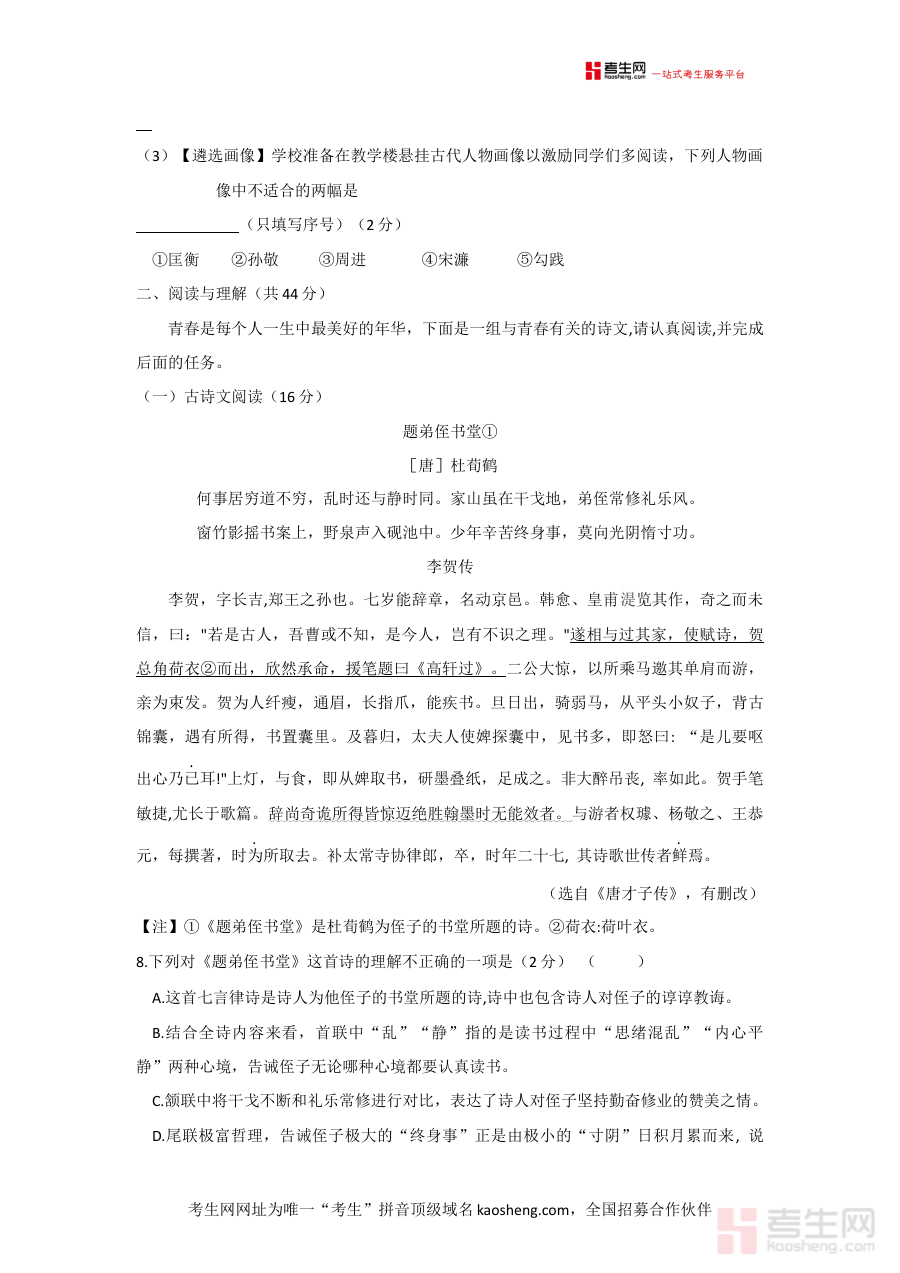 这份试题资料主要用于支持学校及教师对九年级学生的语文学习状况进行系统诊断,帮助精准识别学生在语文知识掌握、能力发展等方面的优势与不足,为后续教学策略优化和备考规划制定提供可靠的数据支撑与方向参考。
