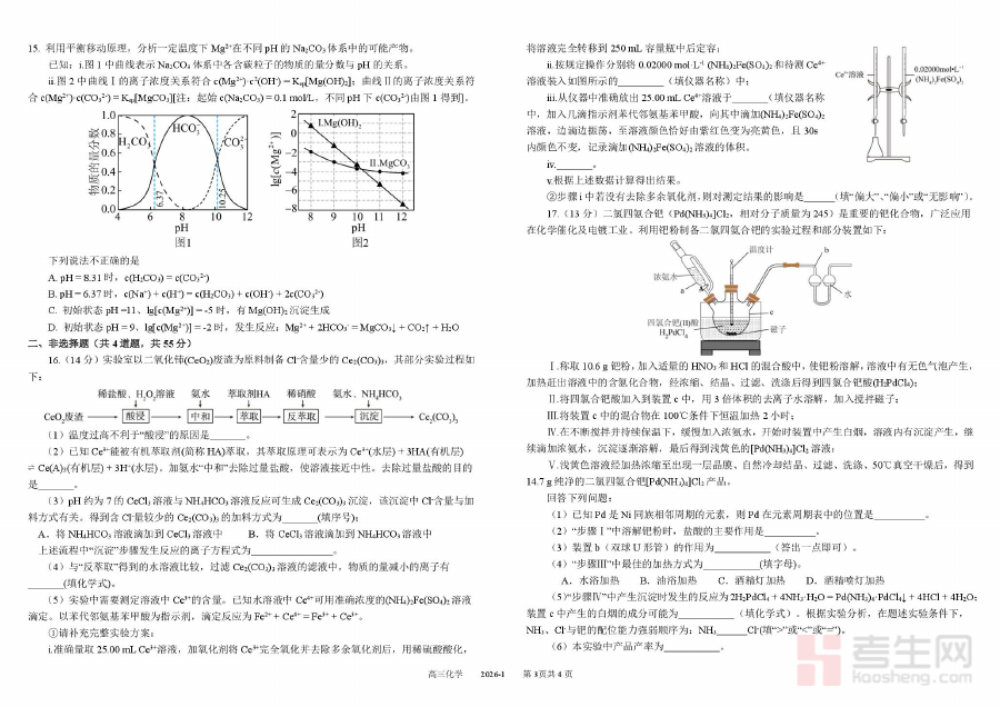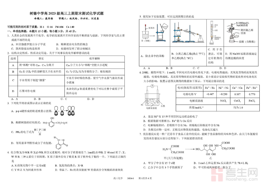 《树德中学2026届高三上学期期末测试化学试题+答案》是针对2026届高三学生设计的上学期期末阶段化学学科测试资料,包含试题与参考答案两部分内容,属于高三上学期末期的标准化检测资料,为学生和教师提供对应阶段的学科评估依据。该资料依托树德中学的教学实践背景,聚焦高三上学期化学学科核心学习内容,能够客观反映学生在该阶段的知识掌握程度与应用能力水平。