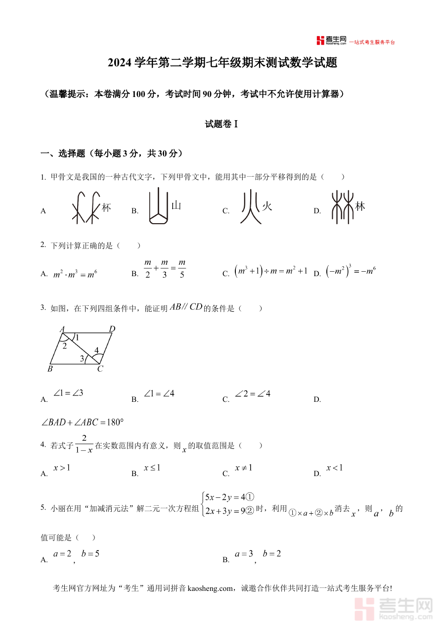 《精品解析:浙江省宁波市四校2024-2025学年下学期七年级期末联考数学试卷(原卷版)》是针对浙江省宁波市四校2024-2025学年下学期七年级期末联考数学科目的原卷版备考资料,包含该次联考数学试卷的原貌内容,为参与此次联考的师生提供直接的备考资料支持,帮助相关人员快速了解该次期末联考的数学考试基本信息与呈现形式。