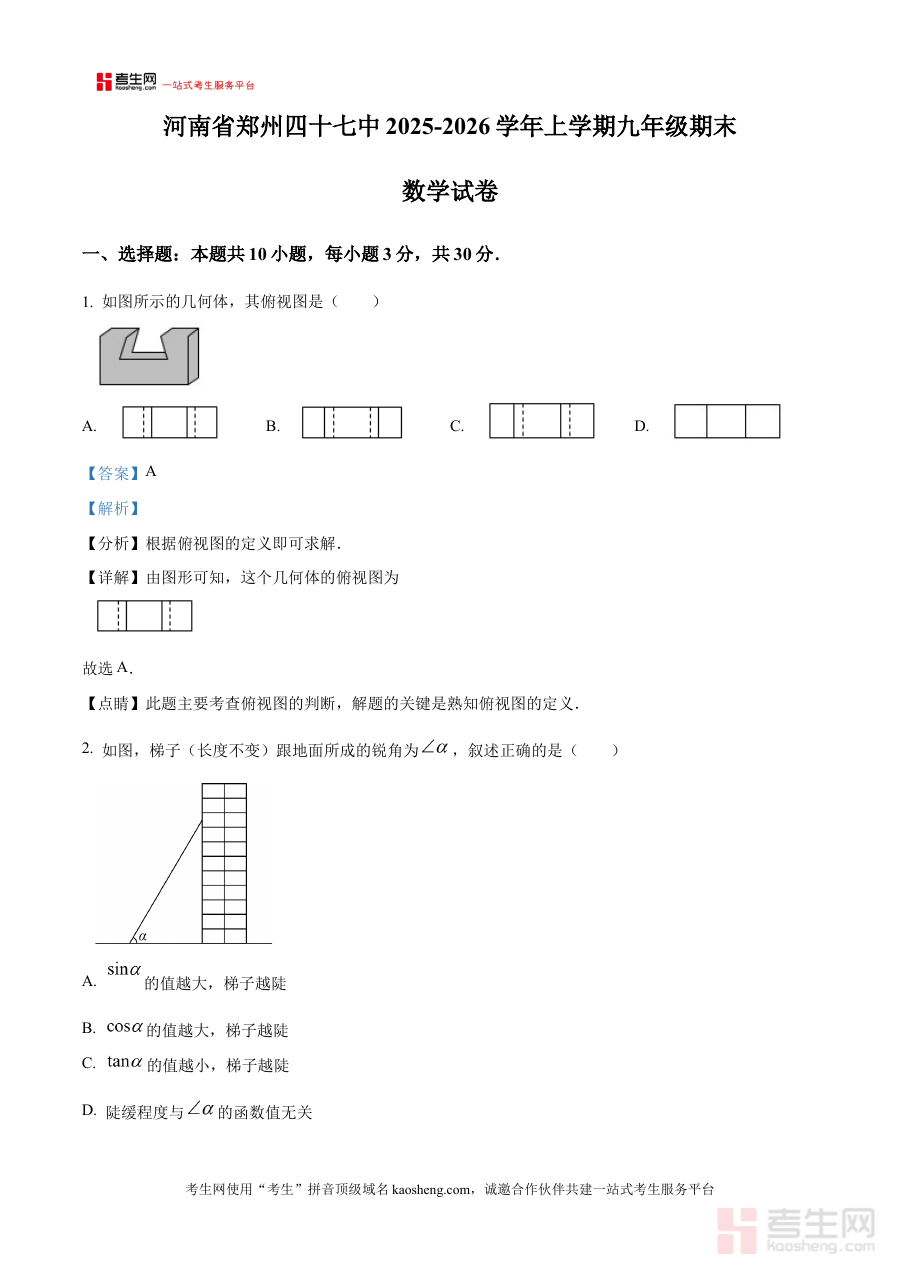 本资料主要适用于河南省郑州市第四十七初级中学2025-2026学年上学期九年级学生,作为期末数学考试的关键复习资源,其解析内容能助力学生深化知识理解与应用能力,为阶段检测及后续学习安排提供有力支撑,具有显著的实用价值。