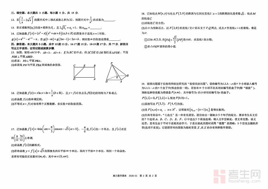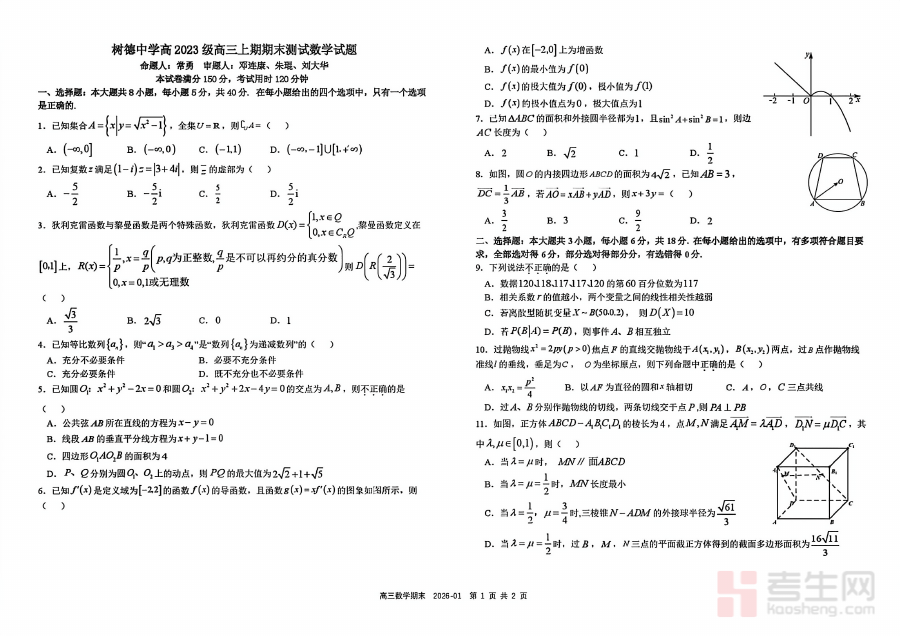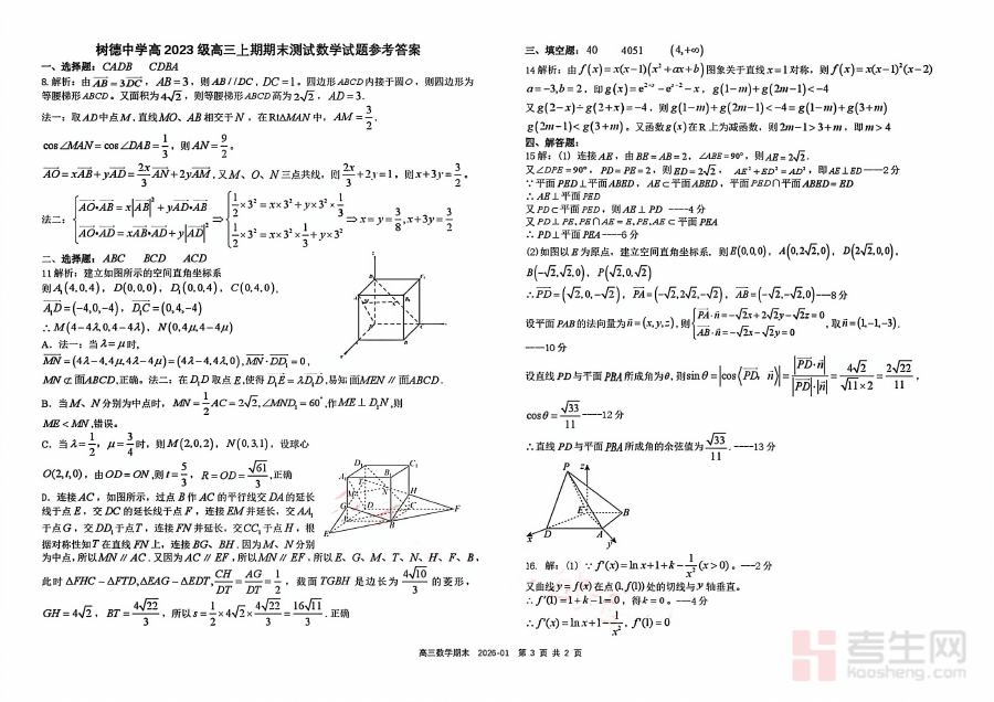 《树德中学高2023级高三上期期末测试数学+答案》是树德中学针对高2023级学生高三上期期末阶段推出的数学学科测试资料,包含测试卷与参考答案两部分。该资料贴合高三上期期末的教学进度与阶段评价需求,是检验学生该阶段数学学习成效的规范性资料。