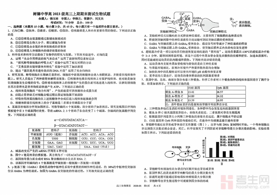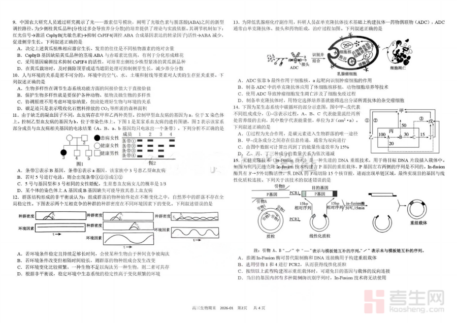 《树德中学高2023级高三上期期末测试生物+答案》是树德中学针对高2023级高三学生设计的上学期期末生物学科测试资料及配套参考答案。该资料紧密贴合高三上学期生物学科教学进度与期末检测要求,是学生进行期末复习与自我检测的重要资源,能够帮助学生快速定位学习中的薄弱环节,为后续复习提供方向指引,助力学生适应高三阶段的阶段性检测节奏。