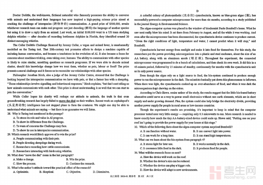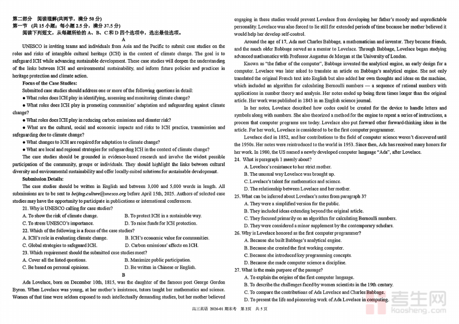 《树德中学高2023级高三上期期末测试英语》是树德中学为高2023级学生设计的高三第一学期期末英语学科测试资料,属于高中阶段重要的阶段性学业评价材料,旨在客观反映该年级学生经过高三上期英语学习后的综合学业水平状态,是连接高三前期学习与后续高考备考的关键评价依据之一。