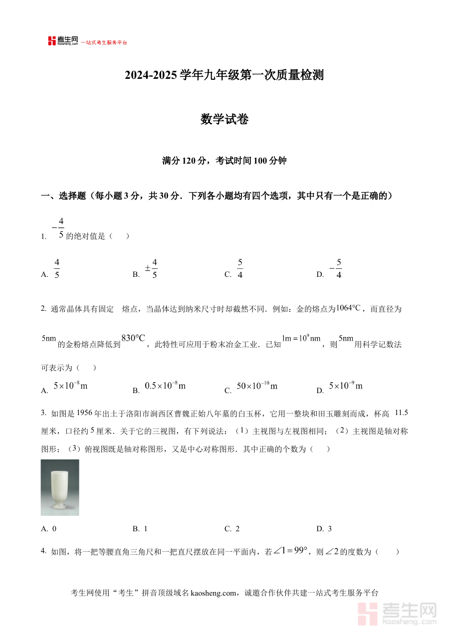 《精品解析:河南省郑州市二七区2024-2025学年下学期九年级第一次数学试题试卷 (原卷版)》是针对河南省郑州市二七区2024-2025学年下学期九年级阶段设置的数学学科考试资料,聚焦该区域九年级学生本学期首次数学检测的原卷内容,为相关教学及备考活动提供贴合本地学情的参考依据。