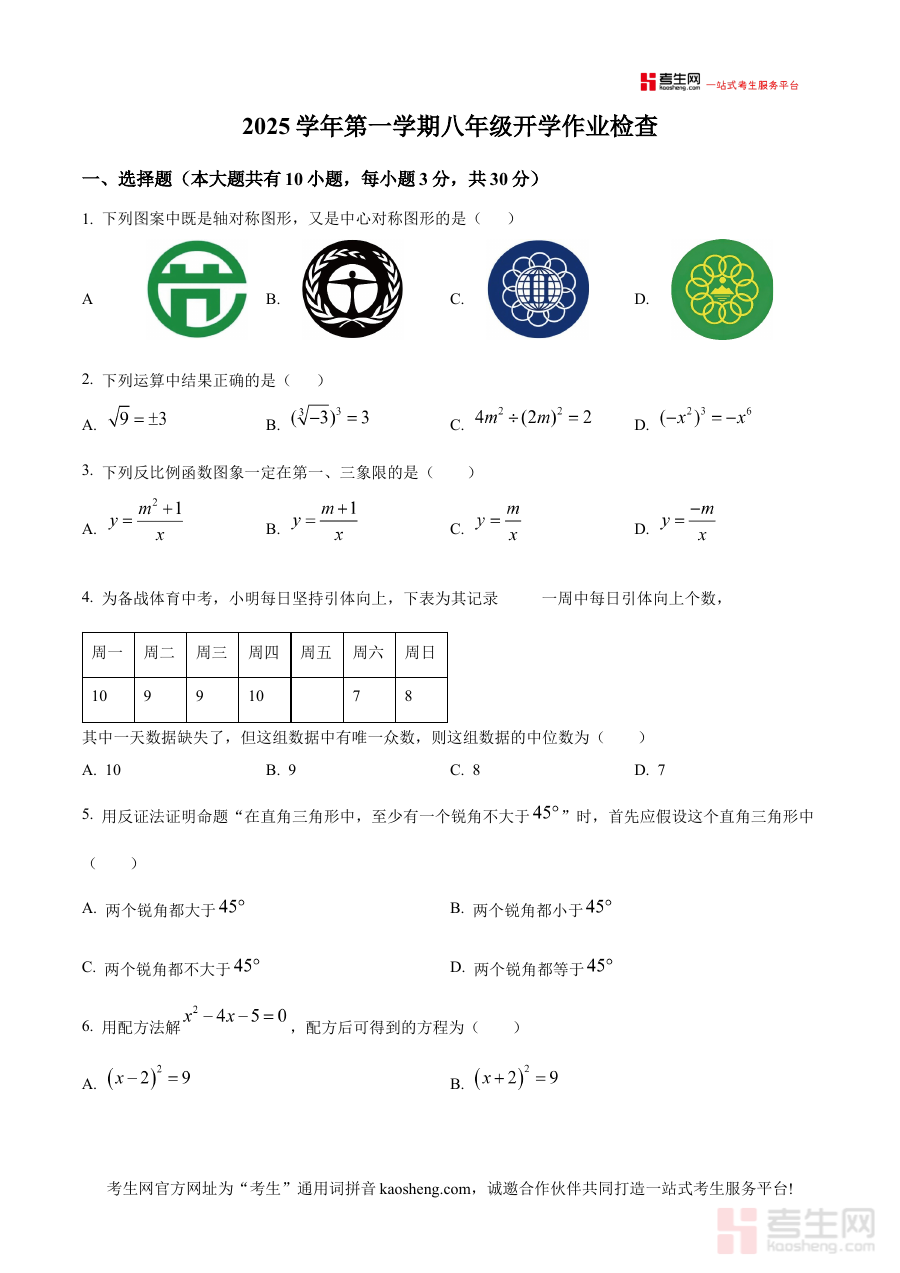 该资料主要适用于宁波大学青藤书院2025-2026学年八年级的学生,同时也可为该书院的数学教师提供教学参考。对于学生而言,它能助力其在开学前进行有效的知识回顾与能力评估,为新学期数学学习奠定良好基础;对于教师来说,可借助试卷了解学生的初始学习状态,从而更精准地调整教学策略,增强教学的针对性与有效性。