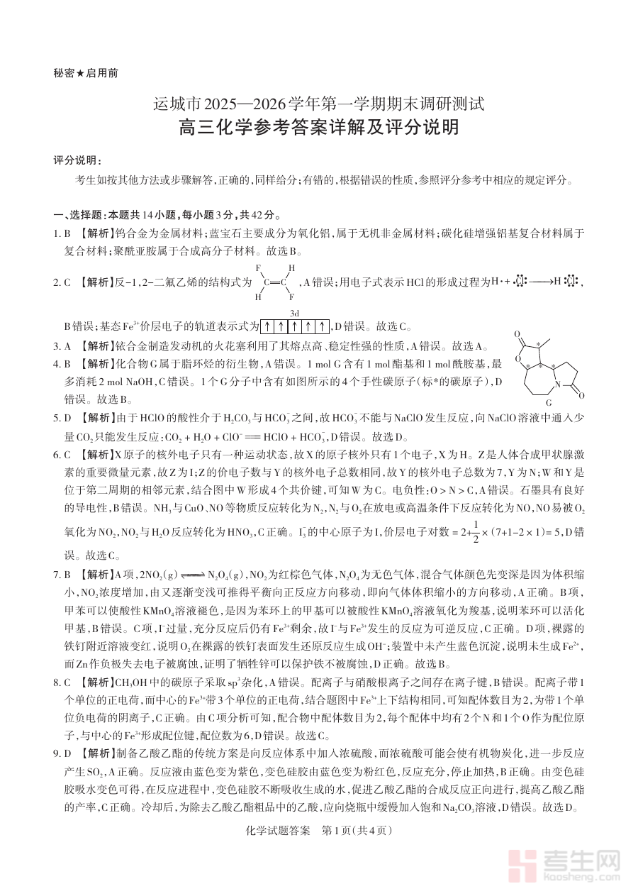 《化学详解 运城市2025—2026学年第一学期期末调研测试》是针对运城市2025至2026学年第一学期化学学科期末调研测试的专项备考资料,聚焦该地区本学期化学学科的阶段性评估目标,为使用者提供与期末调研测试方向相匹配的内容支持,助力其做好考前准备。