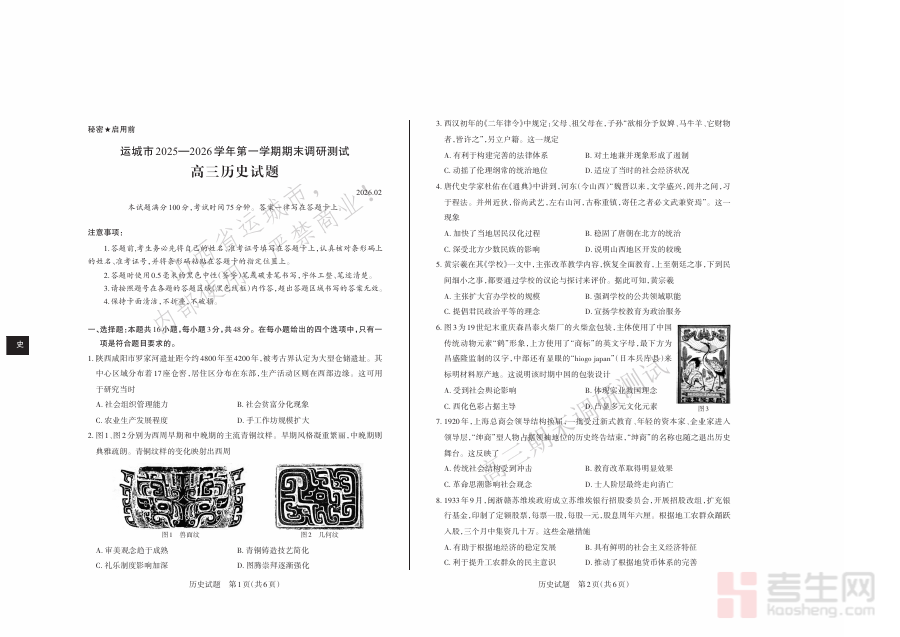 《历史试题 运城市2025—2026学年第一学期期末调研测试 高三历史》是运城市教育系统针对2025至2026学年第一学期高三年级学生推出的期末调研测试配套备考资料,其考试类型为区域统一组织的期末调研测试,覆盖该学年第一学期高三历史学科的核心学习范围。该资料紧密贴合运城市高三历史教学进度与区域教学评价标准,为学生提供与期末调研测试高度适配的练习载体,帮助学生熟悉区域考试的命题导向与评价维度。
