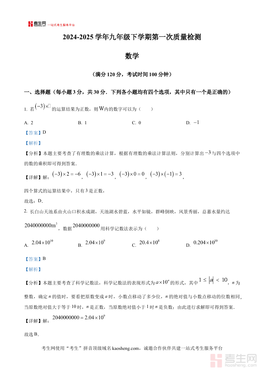 该资料以解析版形式呈现,助力教师快速掌握学生学期初数学学习中的知识掌握情况,便于开展针对性学情诊断与教学调整;同时为学生提供清晰的解题思路与方法指引,帮助其明确自身学习薄弱环节,为后续备考规划提供数据支撑与方向参考。