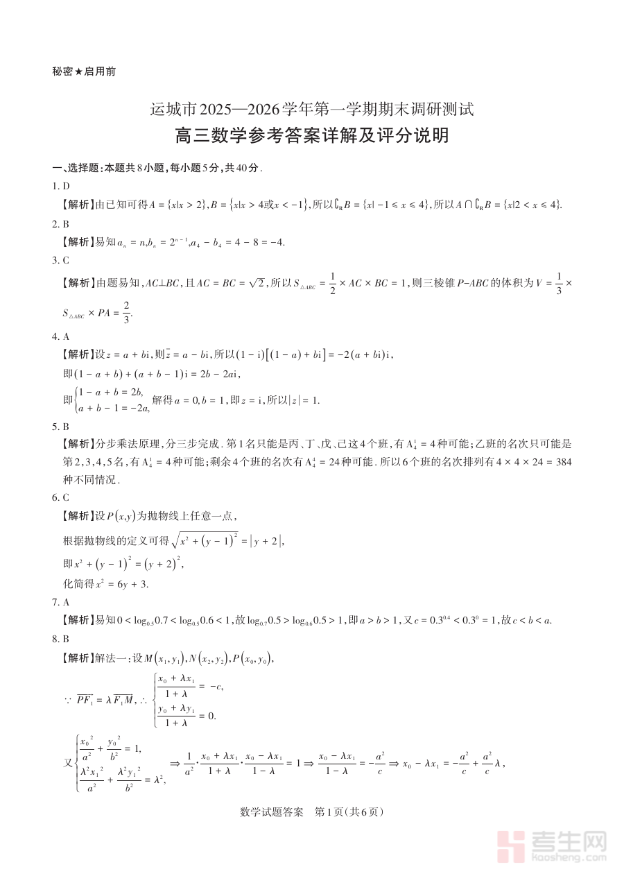 该资料的适用人群为运城市2025—2026学年第一学期就读的中学生及担任其数学教学的教师。对于学生而言,它是期末阶段进行自我检测与知识巩固的重要工具;对于教师来说,它可作为教学评估与复习指导的参考依据,帮助师生共同做好期末调研测试的准备工作,提升教学与学习的整体质量。