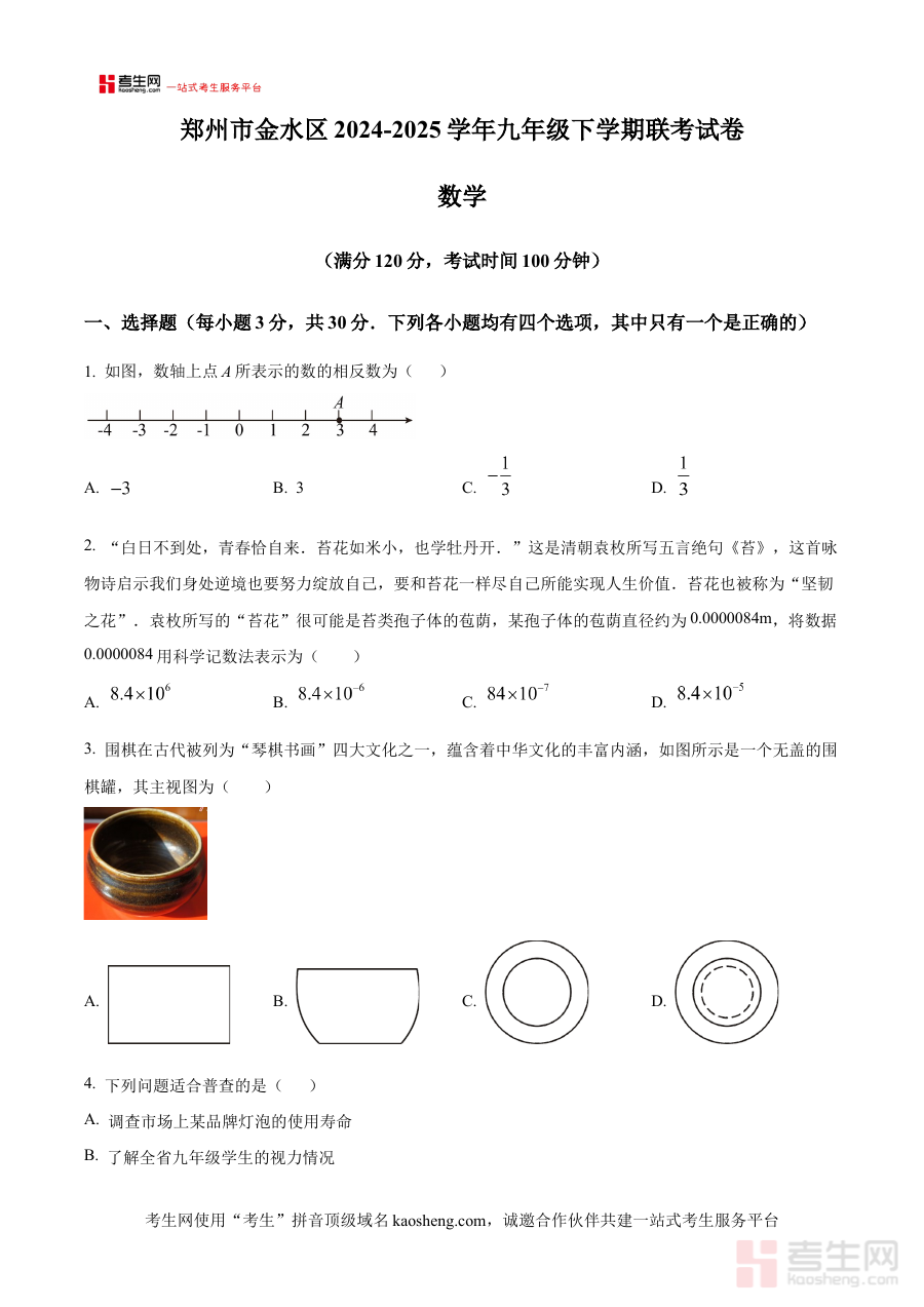 《精品解析:河南省郑州市金水区2024-2025学年九年级下学期第一次联考数学试题试卷(原卷版)》是针对河南省郑州市金水区2024至2025学年九年级下学期第一次联考数学科目的原卷形式备考资料,精准匹配该区域该学年该阶段的联考考试要求,为考生提供贴合本地教学进度与考试方向的练习载体。
