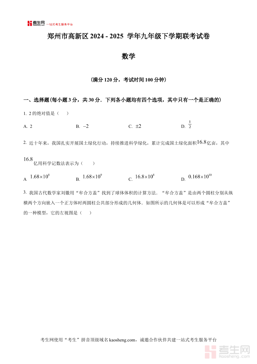 《精品解析:河南省郑州市高新区2024-2025学年九年级下学期第一次联考数学试题试卷(原卷版)》是针对河南省郑州市高新区2024-2025学年九年级下学期第一次联考的数学学科备考资料,聚焦该区域特定学年段的阶段性联考需求,为考生提供贴合本地考试实际的原卷形式内容。