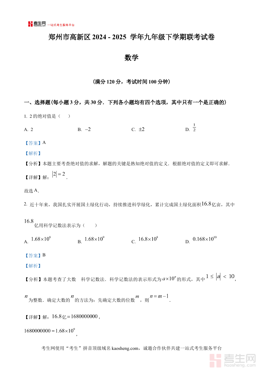 本资料主要适用于河南省郑州市高新区2024-2025学年九年级的数学教师与学生,其解析内容可支撑教师进行阶段教学效果评估,也能助力学生在联考后开展针对性复盘与强化训练,提升阶段备考的效率与质量。