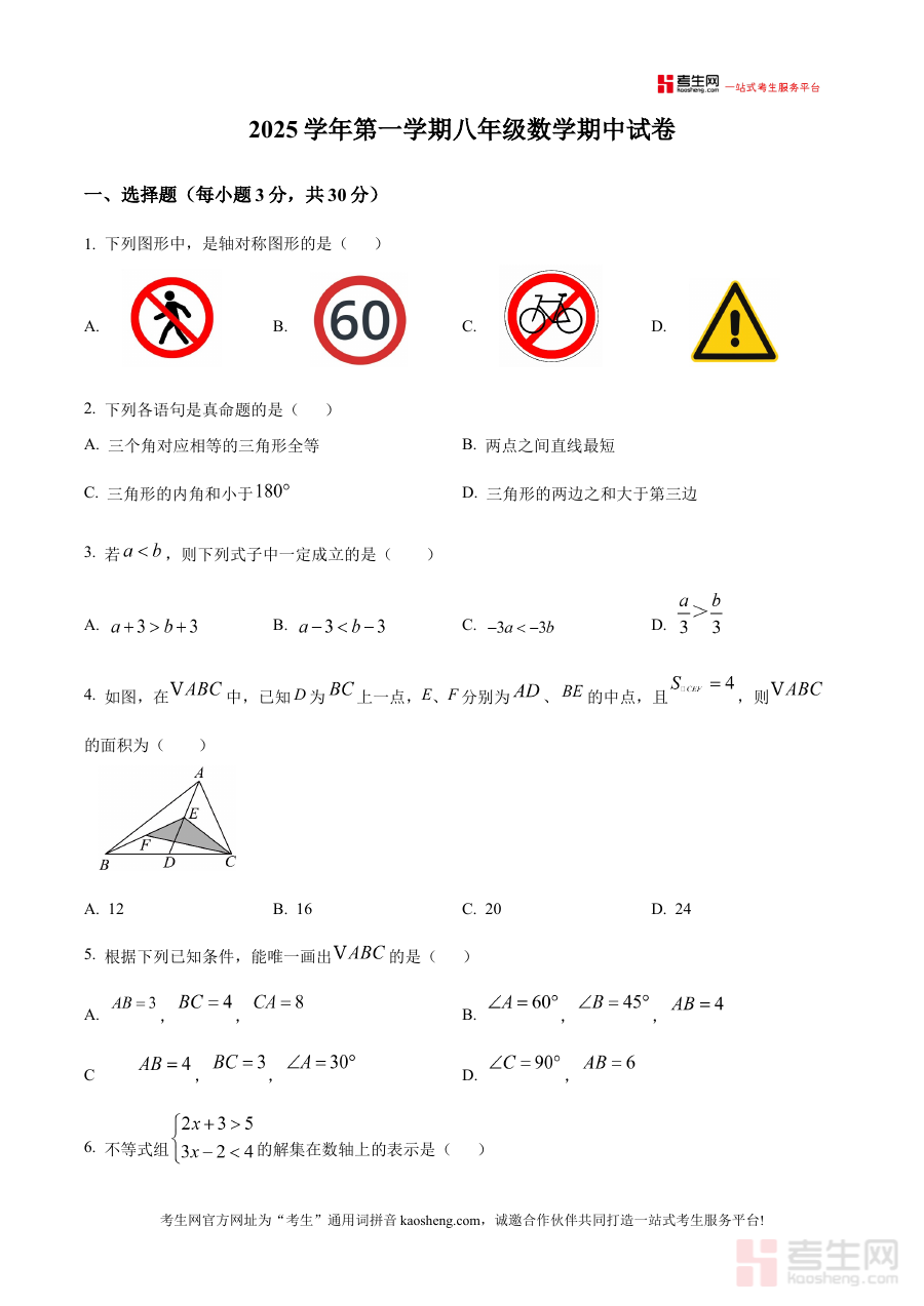 《精品解析:浙江省宁波市海曙区2025-2026学年上学期六校联考八年级数学试卷(原卷版)》是针对浙江省宁波市海曙区2025至2026学年上学期六所学校联合举办的八年级数学考试所编制的原始试卷版本,属于该阶段数学学科联考的核心备考资料之一。它精准贴合海曙区六校联考的考试范围与时间节点,为师生提供了与实际考试形式高度一致的练习载体,有助于使用者提前熟悉联考的整体框架与要求。