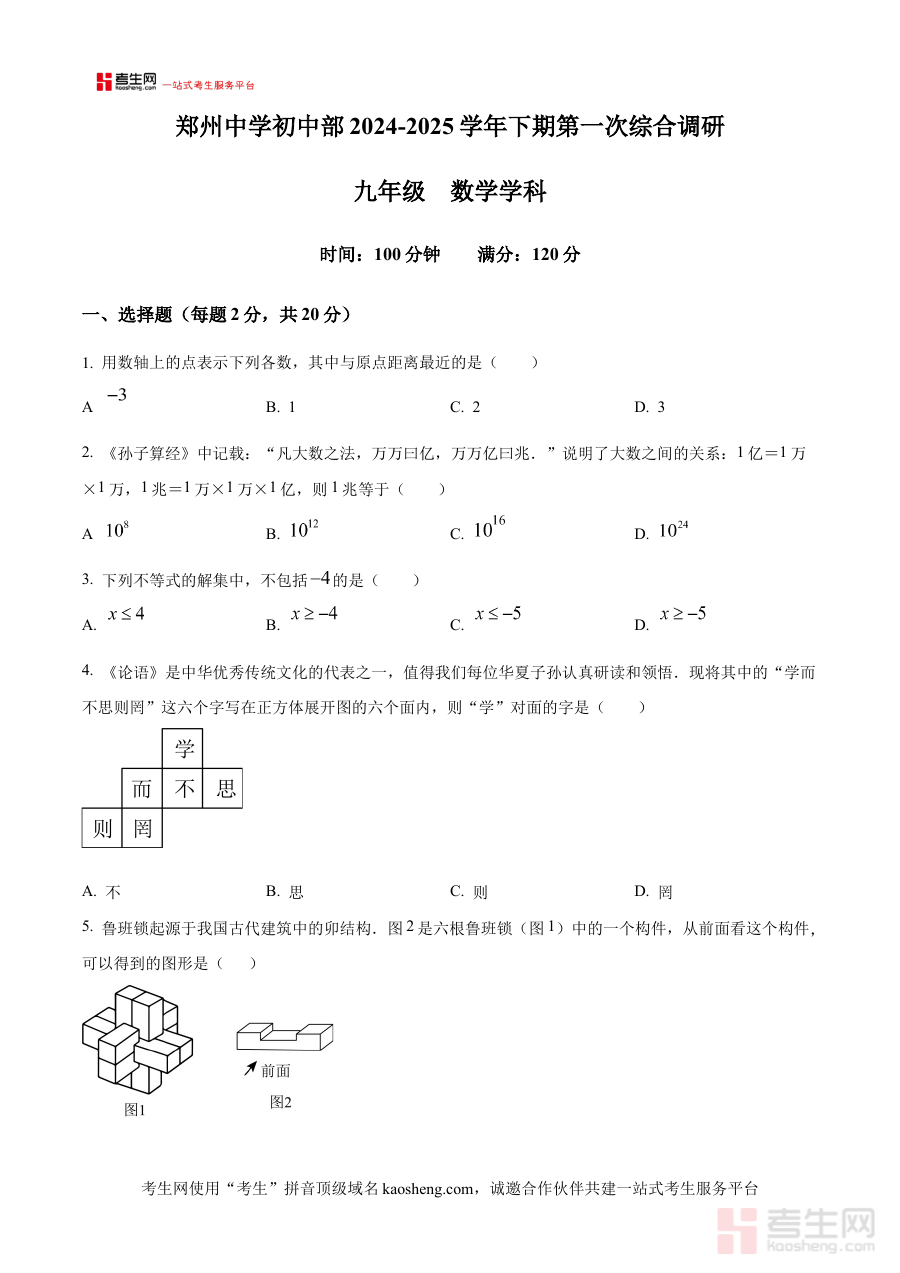 本资料主要适用于河南省郑州市高新区郑州中学2024-2025学年九年级学生,考生通过使用该原卷版试题能提前适应考试形式与节奏,增强应试能力;教师可借助该资料开展阶段检测,优化教学策略,共同促进考生数学学科成绩的稳步提升。