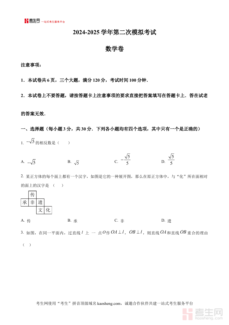 《精品解析:2025年河南省郑州市高新区一八联合学校九年级第二次模拟考试数学试卷(原卷版)》是针对2025年河南省郑州市高新区一八联合学校九年级学生设计的阶段性模拟考试资料。该资料对应该校九年级第二次数学模拟考试,以原卷版形式呈现,能够精准匹配本次模拟考试的命题框架与考试标准,为学生提供贴近实际考试场景的备考资源,帮助学生提前适应考试的整体节奏与形式要求。