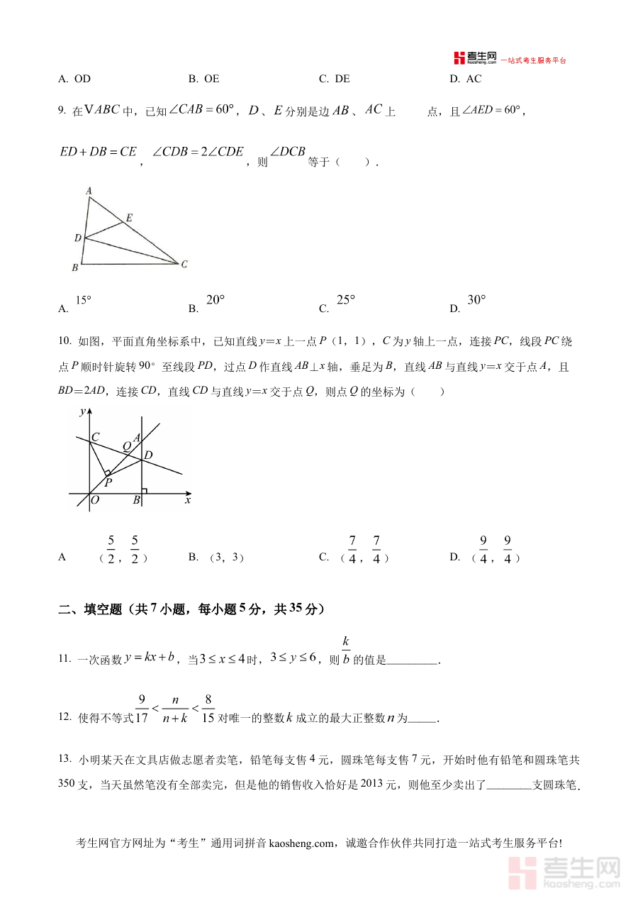 《精品解析:浙江省宁波市鄞州区宋诏桥、鄞州外国语、钟公庙等校2023-2024学年上学期12月八年级竞赛数学试卷(原卷版)》是2023-2024学年上学期12月面向浙江省宁波市鄞州区多所中学八年级学生的数学竞赛类试卷资料,为该阶段数学竞赛备考提供了贴合本地校际联合检测场景的原卷资源。