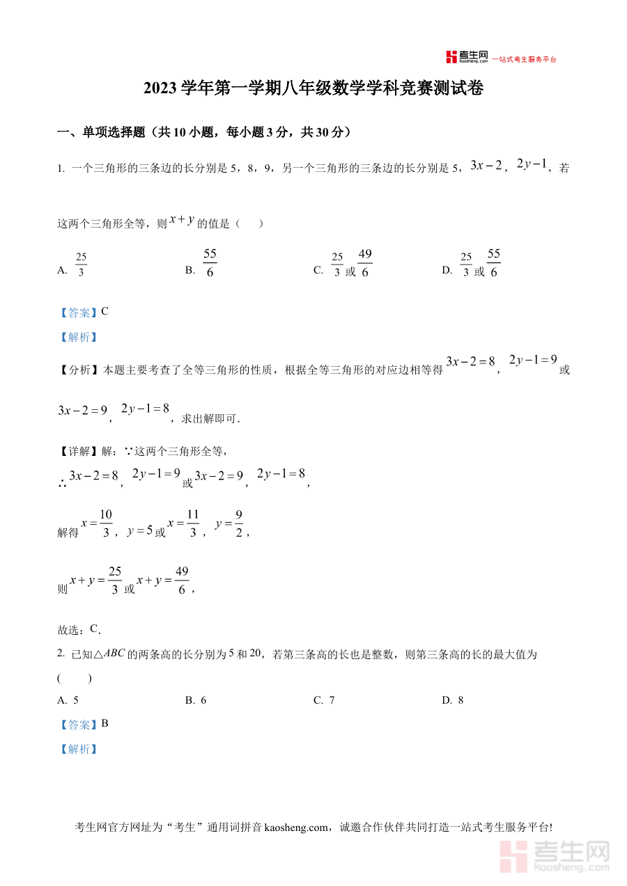 《精品解析:浙江省宁波市鄞州区宋诏桥、鄞州外国语、钟公庙等校2023-2024学年上学期12月八年级竞赛数学试卷(解析版)》是针对2023-2024学年上学期12月浙江省宁波市鄞州区多所学校联合开展的八年级数学竞赛所编制的备考辅助资料,涵盖该地区特定阶段竞赛类数学考试的相关元信息。