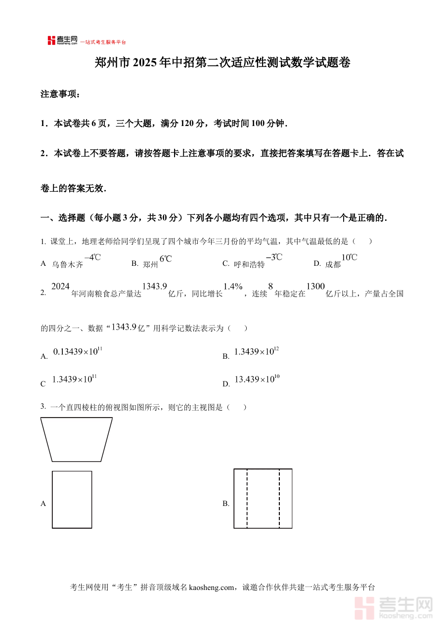 《精品解析:2025年河南省郑州市中考二模数学试卷(原卷版)》是面向2025年河南省郑州市初中毕业生的数学学科阶段性备考资料,紧密贴合当地中考二模考试的命题背景与考情特点,为考生提供与正式模拟考试高度一致的练习载体,助力考生熟悉本地中考数学的考查方向与试卷结构,是衔接一轮复习与中考冲刺的重要过渡资源。