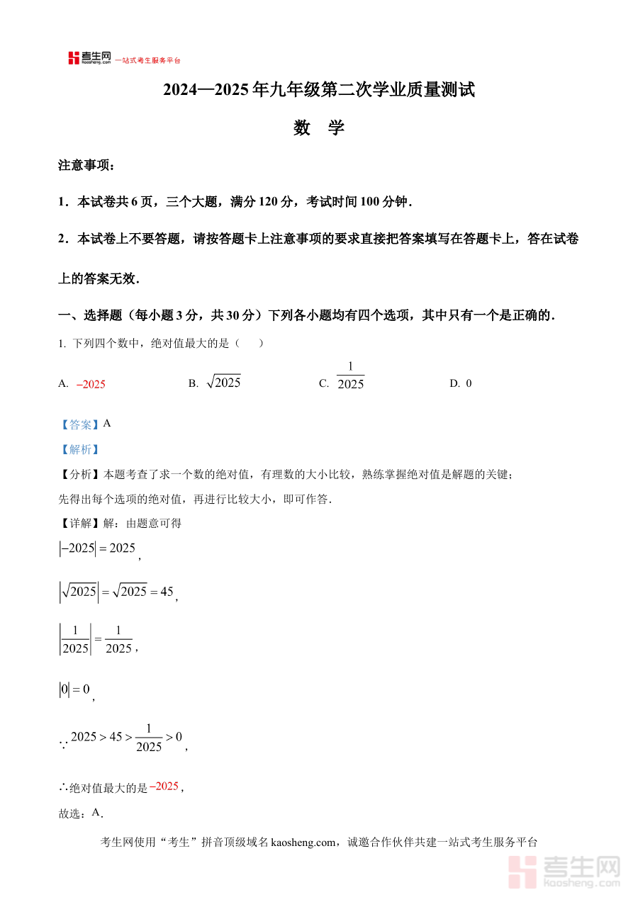 《精品解析:2025年河南省郑州市登封市中考二模数学试题(解析版)》是针对2025年河南省郑州市登封市初中毕业生学业水平第二次模拟考试的数学学科专项备考资料。该资料紧密贴合当地中考二模考试的区域命题特点与阶段性考查需求,为考生搭建起连接日常复习与中考实战之间的桥梁,帮助考生提前适应本地二模考试的题型结构与考查方向。