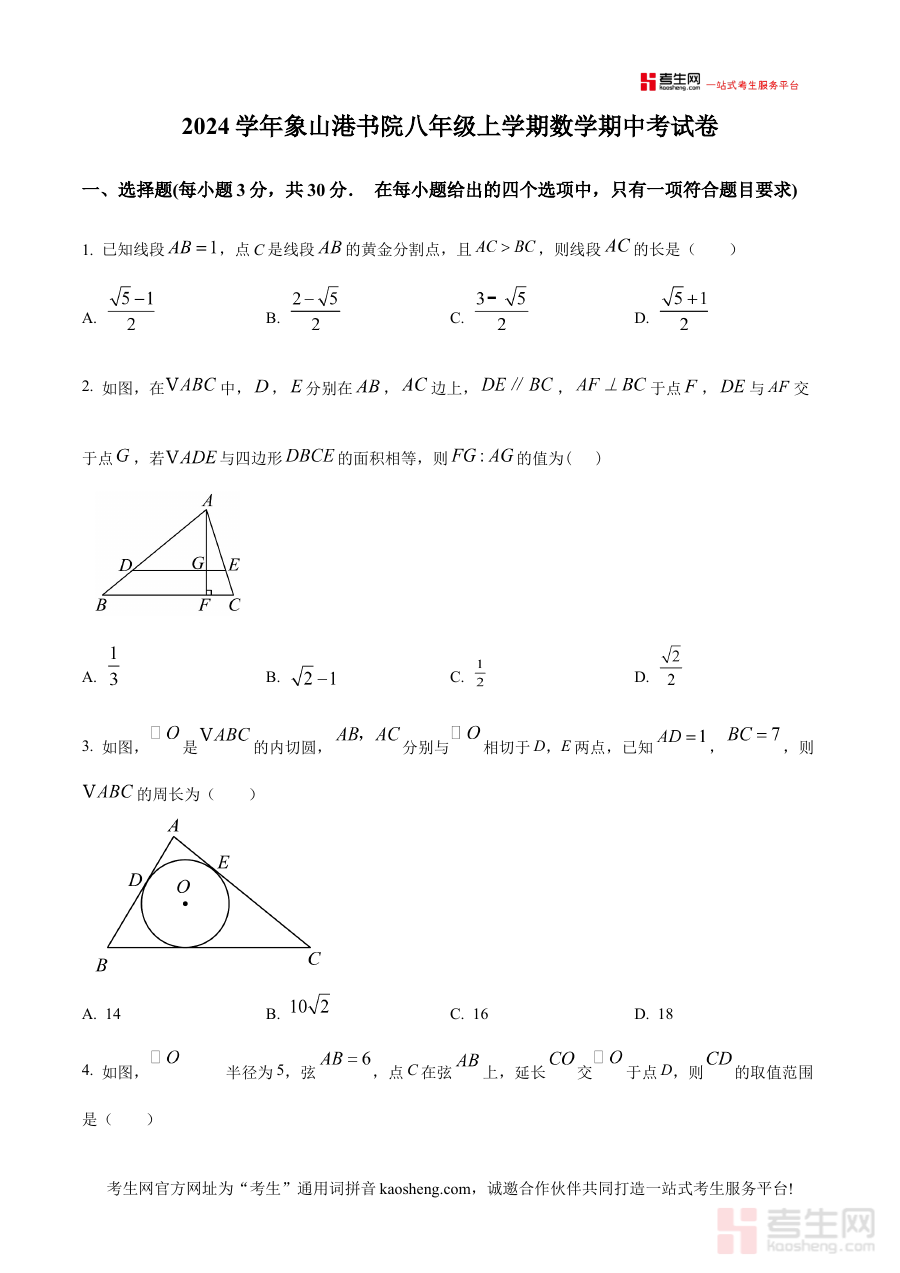 该资料主要适用于象山港书院2024-2025学年八年级学生,也可供同地区或相似学习进度的八年级学生参考使用。通过使用这份原卷版试题,学生能够更高效地把握阶段学习重点,优化备考方向;教师则可借助它进行学情分析与教学优化,共同推动学生在期中考试中实现学习目标,提升数学学科素养,为后续学习奠定坚实基础。