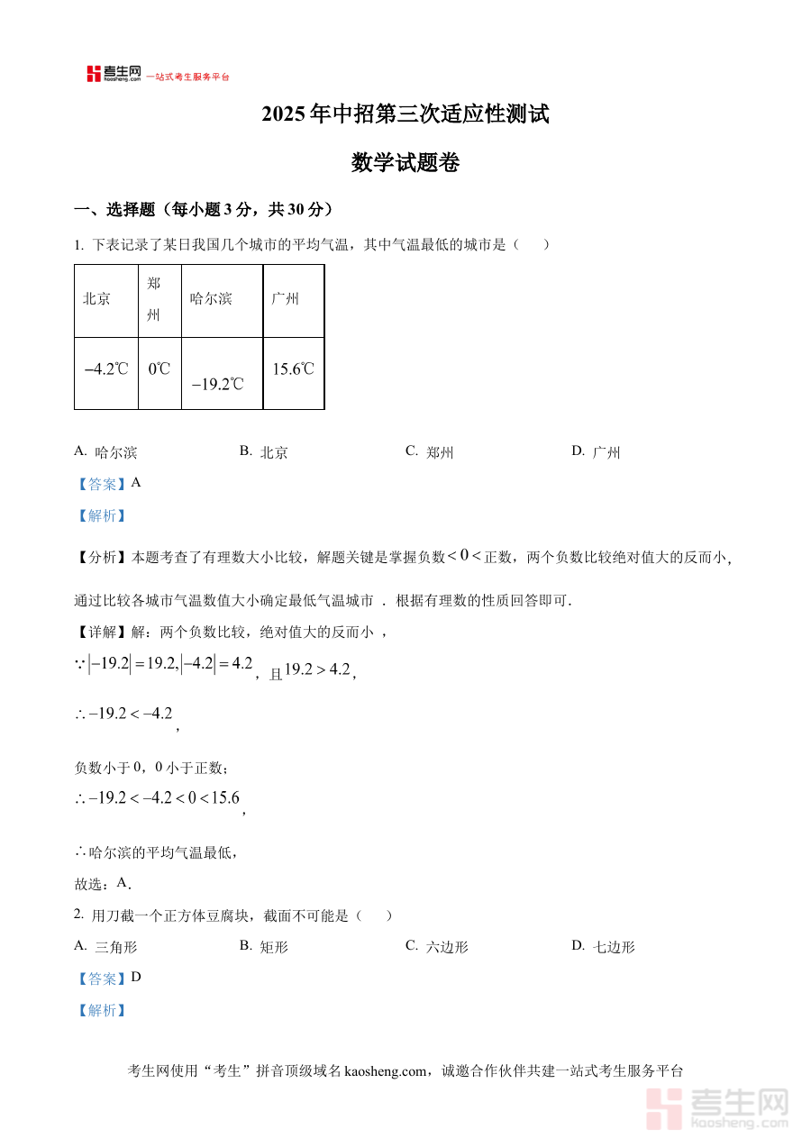 《精品解析:2025年河南郑州市第十九初级中学九年级数学三模试题卷(解析版)》是针对2025年河南郑州市第十九初级中学九年级学生数学学科三模考试的专用备考资料。三模考试作为九年级升学考前的关键模拟环节,对学生适应考试节奏、检验复习成果具有重要意义,该资料贴合本地教学实际与考试要求,能够反映该学校及地区九年级数学学科在备考后期的考查重点与方向,为使用者提供精准的复习参考依据。