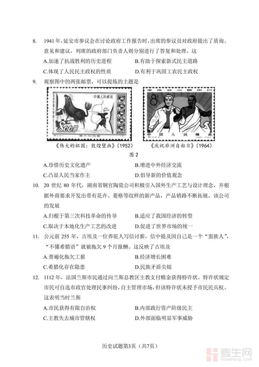 此试卷可作为高三历史学科阶段学情诊断的重要工具,能够帮助教师和学生精准识别学习过程中的知识薄弱点与能力短板;同时,它也可纳入备考规划体系,作为阶段性复习效果的检验依据,辅助师生调整后续复习策略,确保复习方向与当地高考历史命题趋势保持一致,提升复习的针对性与有效性。