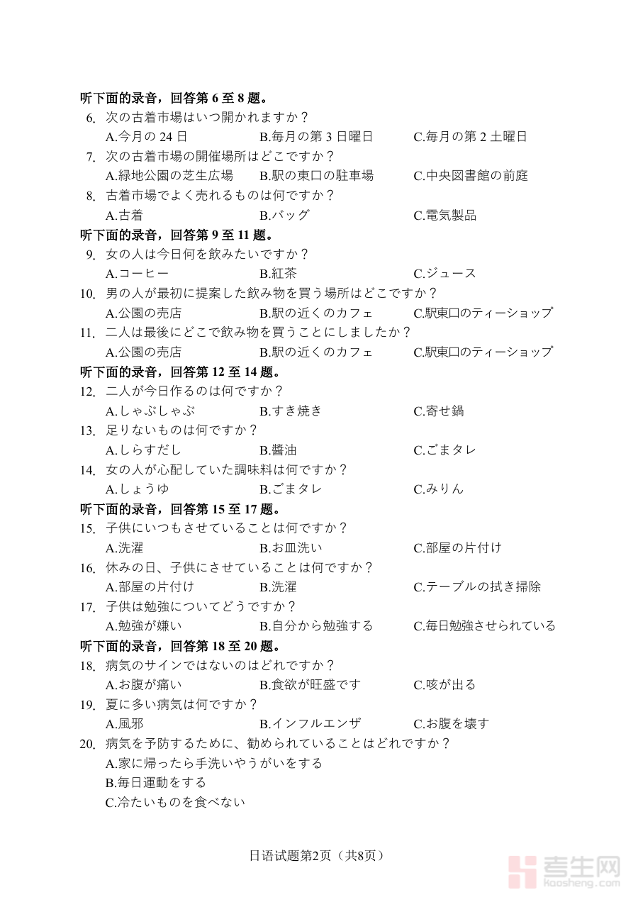 该资料可用于教师对学生的学情诊断,通过模拟考试结果分析学生在日语知识体系中的薄弱环节,进而优化教学计划与辅导策略;同时也能辅助学生进行自我检测,清晰了解自身阶段性学习成果,为后续的备考规划提供精准依据,避免复习过程中的盲目性与低效性。