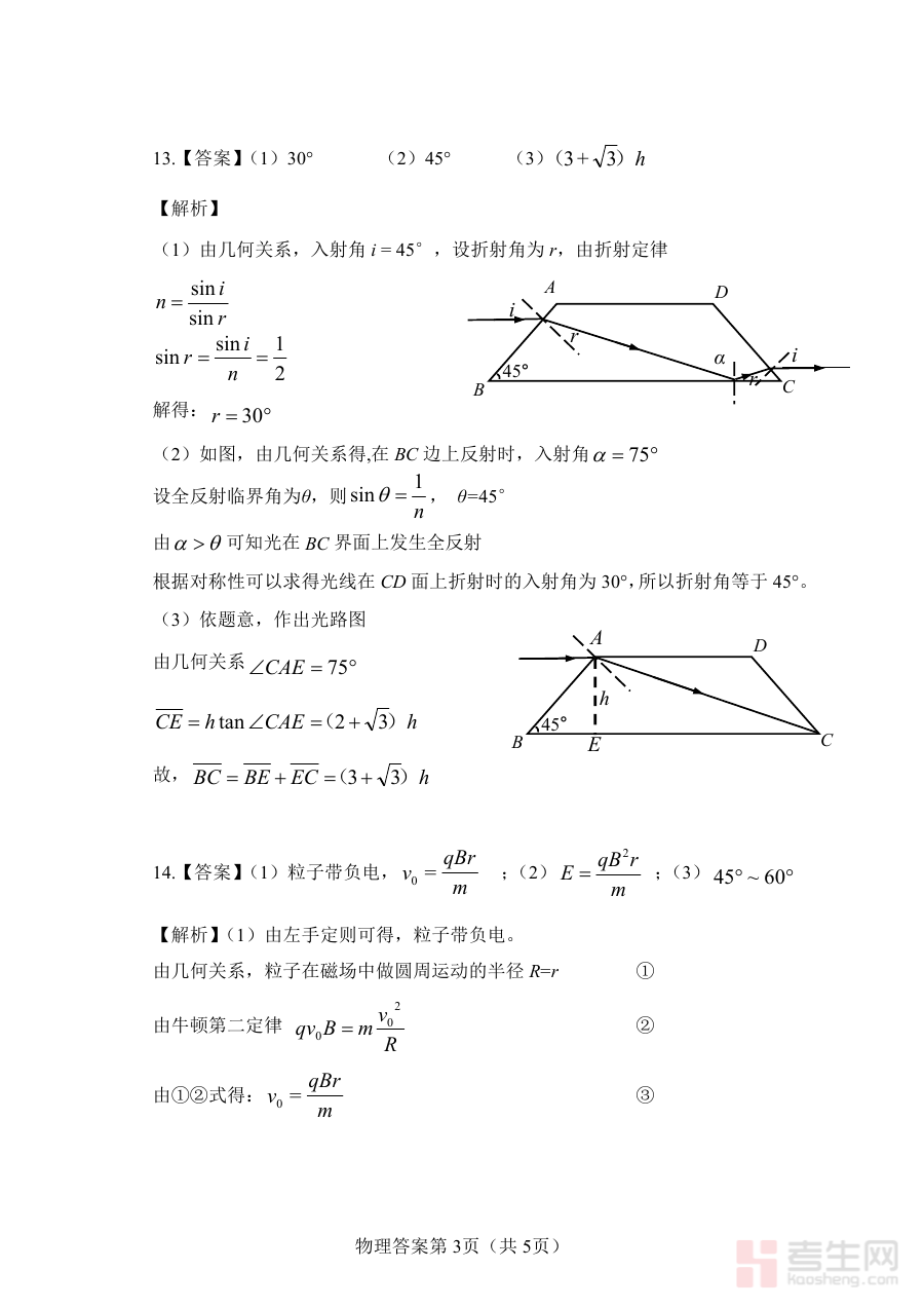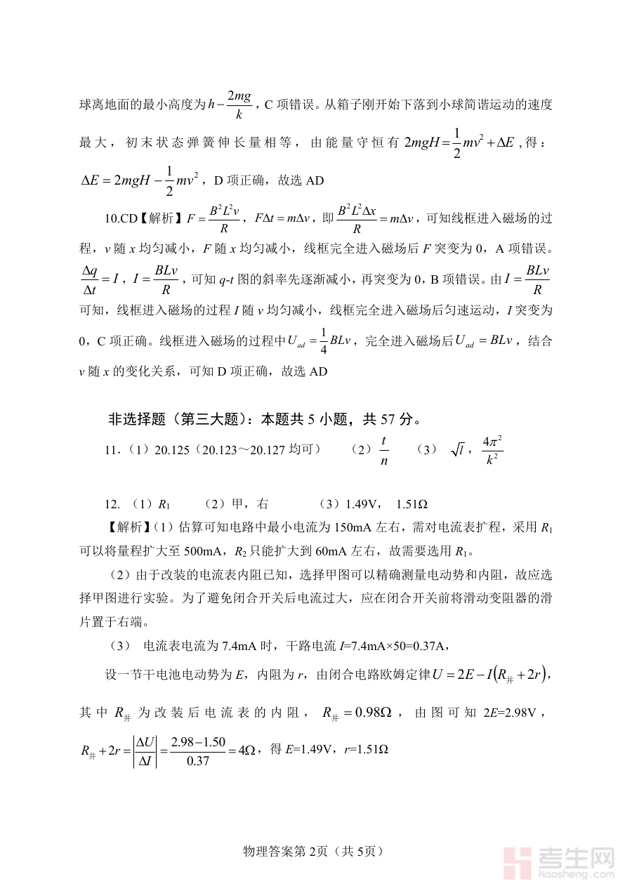 该参考答案资料可用于高三学生进行自我学情诊断,帮助学生在完成模拟考试后快速定位知识掌握的薄弱环节与作答过程中的问题;同时也为物理教师提供教学反馈支持,便于教师根据学生的作答情况调整教学策略,优化后续的备考规划,增强阶段复习的针对性与有效性,助力提升整体备考质量。