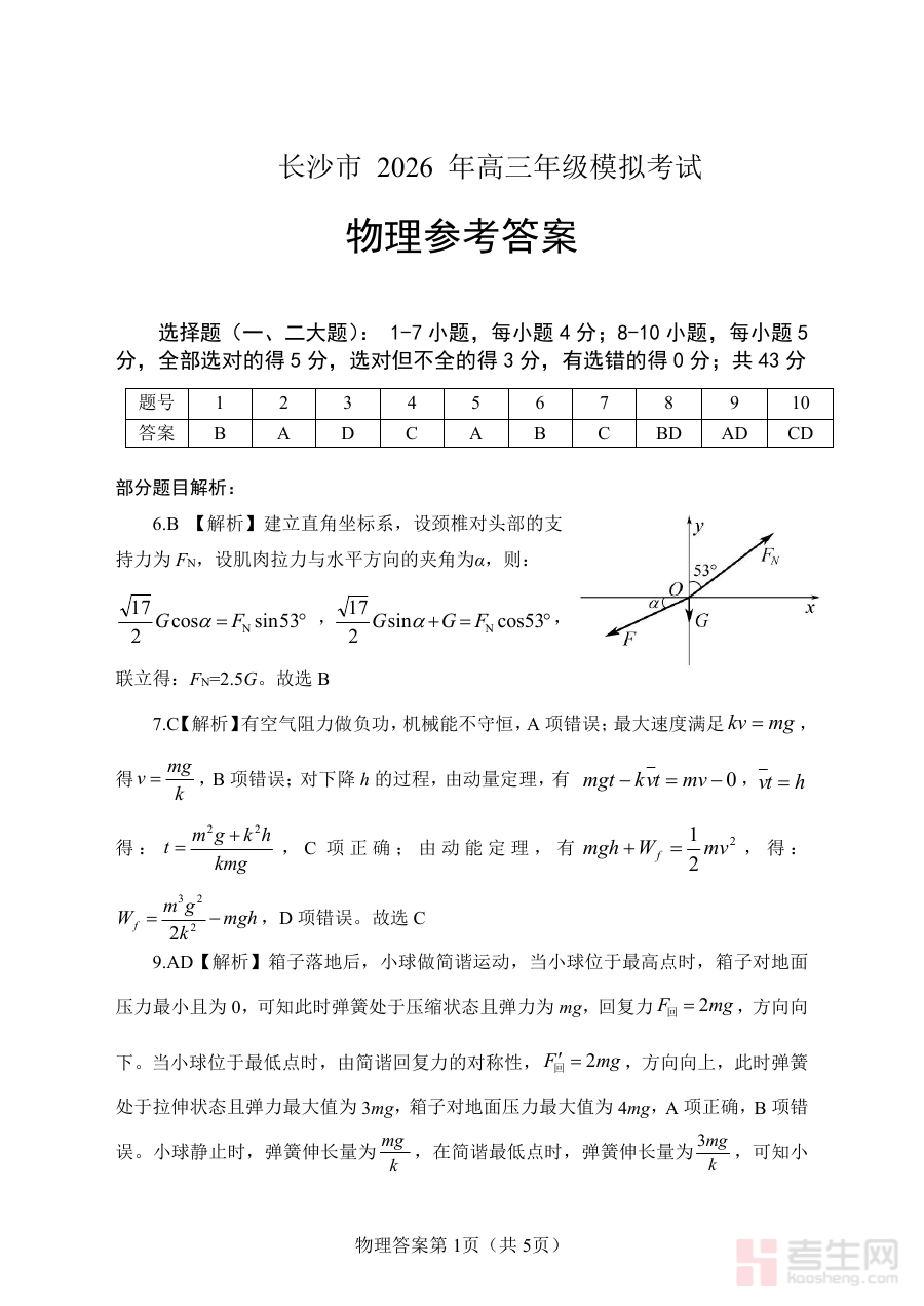 《【物理参考答案】长沙市2026年高三模拟考试》是针对长沙市2026届高三学生物理学科模拟考试的配套参考资料,结合了该地区高三阶段物理教学的阶段性评估需求,为考生和教学工作者提供了该模拟考试物理科目的标准解答依据,有助于明确考试的作答逻辑与评分方向,是区域内高三物理备考过程中重要的辅助材料之一。