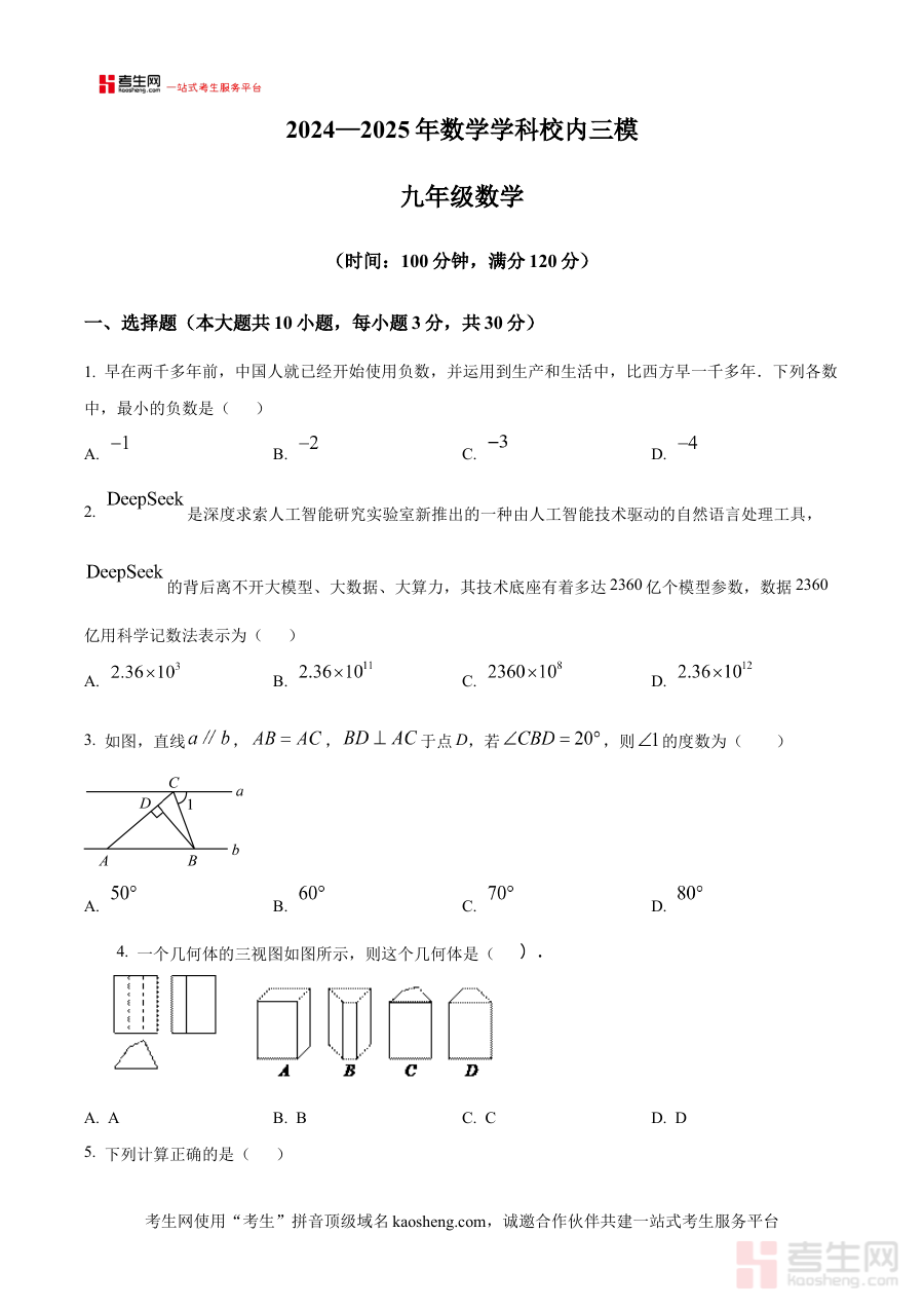 《精品解析:河南省实验中学2025年中招四模数学试题(原卷版)》是面向河南省2025年初中毕业升学考试(中招)推出的优质备考资料。河南省实验中学作为省内知名示范性中学,其模拟试题紧密贴合中招考试大纲要求与命题趋势,2025年四模数学试题原卷版汇聚了学校教研团队对中考考点的深入研究成果,能为考生提供与真实考试高度契合的练习体验,帮助考生提前熟悉中招数学考试的题型分布、时间要求等关键要素,搭建日常复习与实战考试的有效衔接桥梁。
