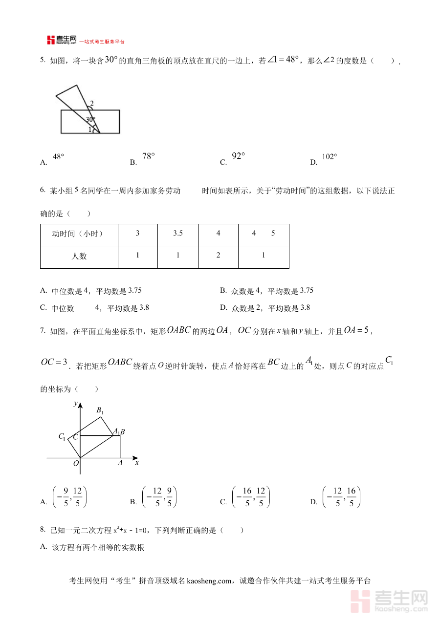 该资料可用于九年级学生的中考数学阶段检测,帮助学生了解自身对中考数学知识的掌握情况,辅助教师进行学情诊断与教学调整,同时为学生后续的备考规划提供参考依据,助力师生明确备考方向与重点。