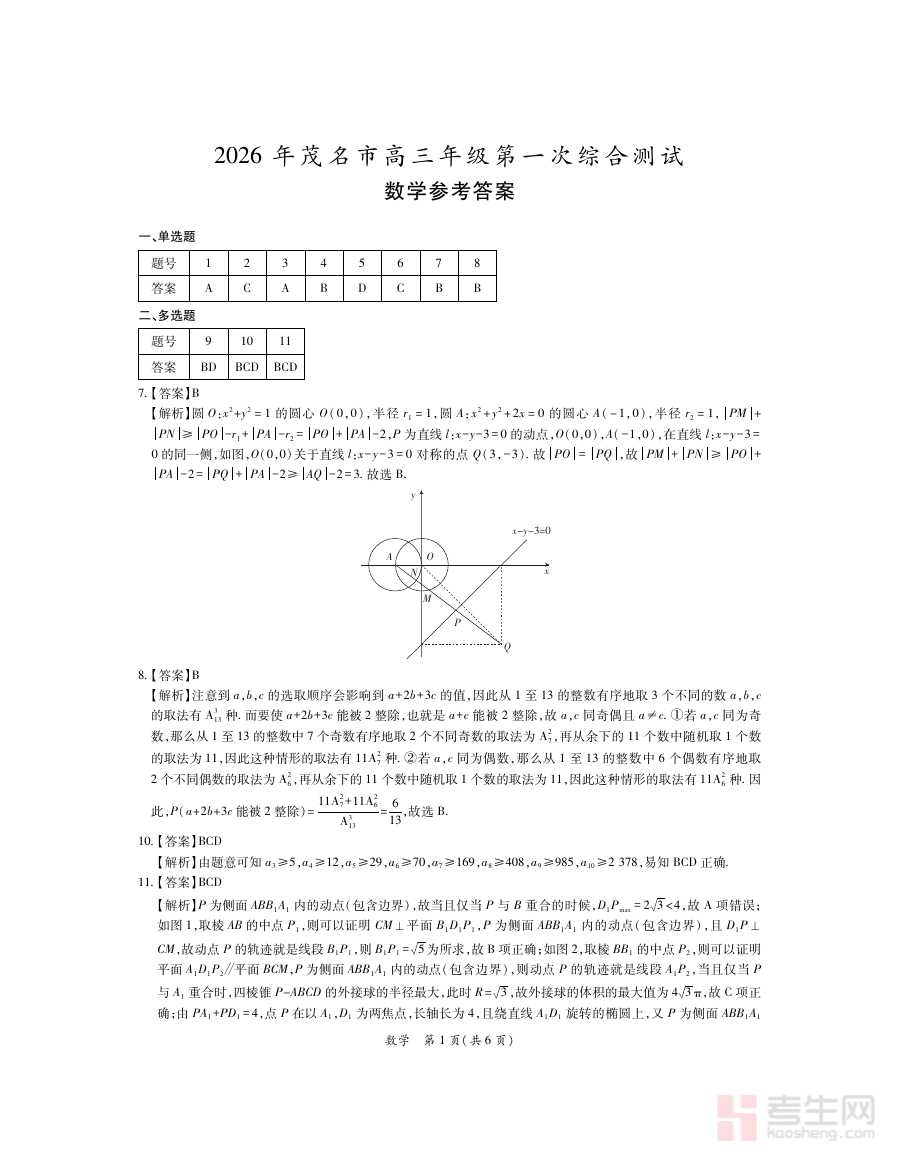 此答案资料适用于2026届广东省茂名市高州市的高三学生、数学教师及相关教学管理人员,通过对一模考试答案的参考,学生可清晰认识自身学习漏洞,教师可优化教学策略,共同提升高三数学备考的效率与针对性,助力阶段检测目标的达成。