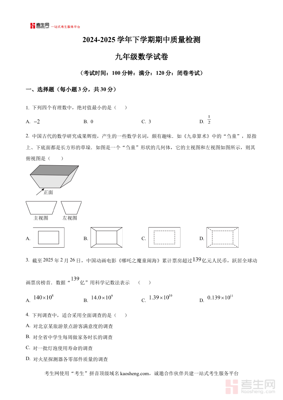 此试卷主要适用于河南省郑州市二七区郑州国际城中学2024-2025学年九年级下学期的学生群体,同时也为该校数学教师提供了阶段教学效果检测的有效载体;对学生而言,使用该资料能帮助其熟悉期中考试的考查框架与节奏,明确阶段性学习目标,提升备考针对性与效率;对教师而言,可依托该资料开展教学评估,优化后续教学策略与内容安排。