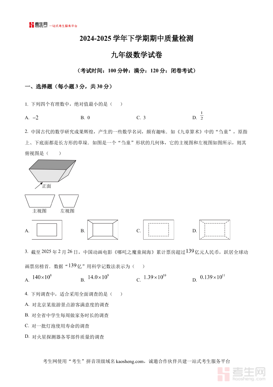 该资料可用于九年级学生开展期中前的阶段检测活动,帮助师生精准把握当前学习进度与知识掌握状况,为后续备考规划提供数据支撑,同时助力学生熟悉期中数学考试的形式与规范,增强应试准备的针对性和有效性。