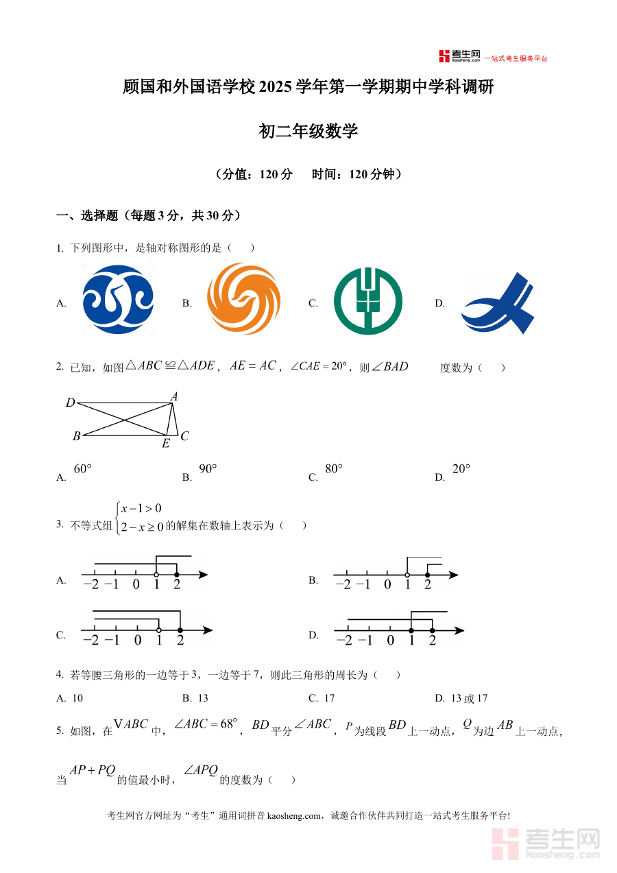 《精品解析:浙江省宁波市北仑区顾国和外国语学校2025-2026学年八年级上学期数学期中试卷(原卷版)》是面向浙江省宁波市北仑区顾国和外国语学校特定学年段的数学期中检测配套资料,聚焦2025-2026学年八年级上学期的期中学习阶段,属于该校校内阶段性考试的原卷呈现版本,为相关学习者提供了高度贴合该校教学进度、考试标准与命题风格的备考支撑素材。