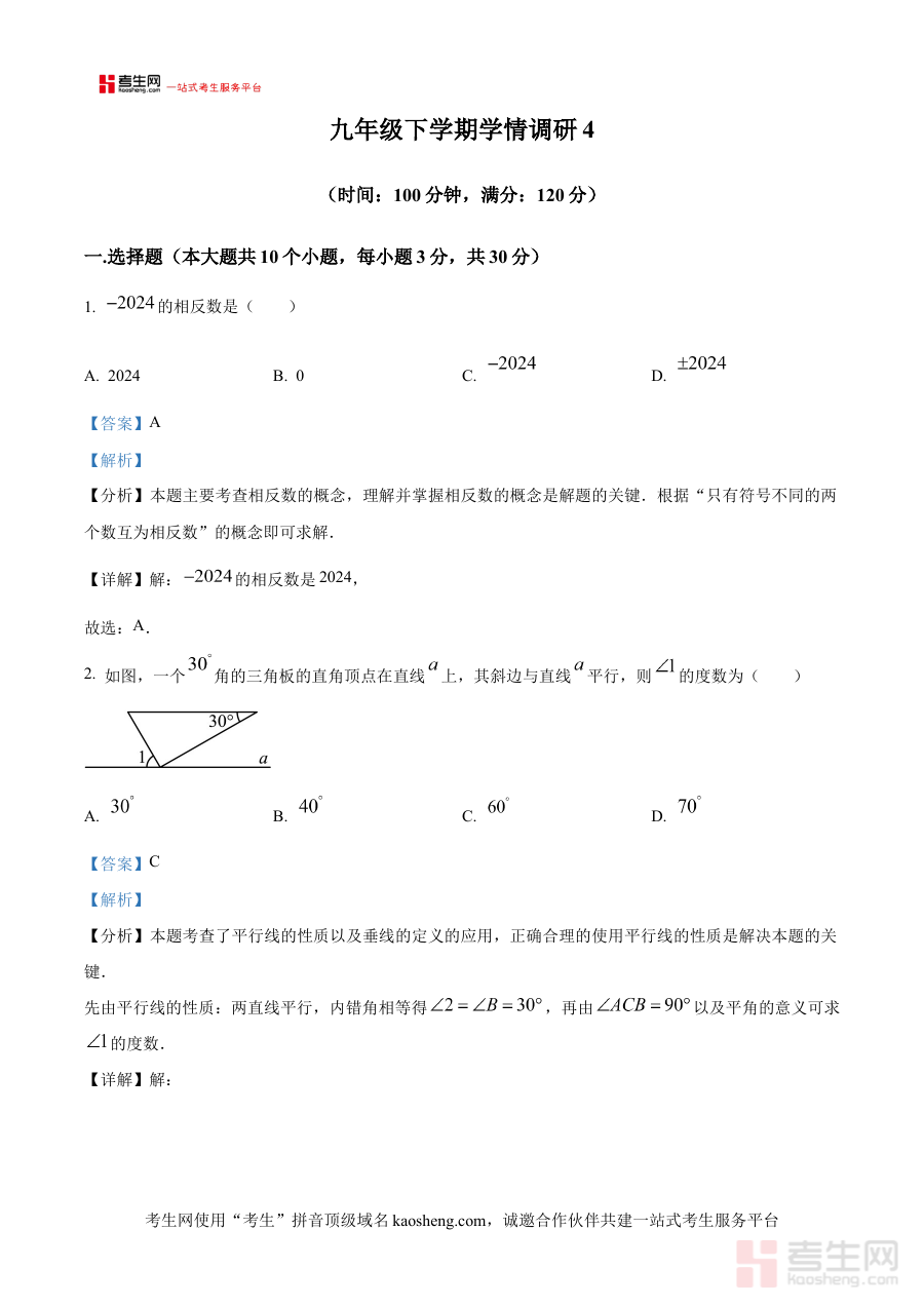 本资料主要适用于河南省郑州市金水区实验中学九年级在读学生,同时也适合同地区其他学校九年级学生作为参考资料使用。对于处于中考备考关键阶段的学生而言,借助该四模试题的练习与解析学习,能够提升数学解题思维与应试能力,强化对核心知识点的理解与运用水平,为中考前最后冲刺阶段积累实战经验,具有显著的阶段检测与备考规划价值,助力学生在后续考试中取得更好成绩。