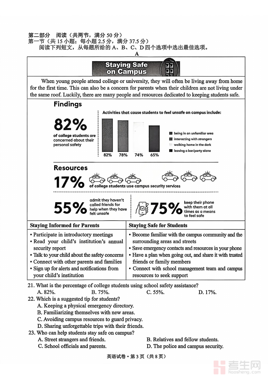 该试卷的核心用途在于辅助高三师生进行英语学科的阶段性学情诊断与备考规划调整。通过完成试卷,学生可直观了解自身在英语学习中的优势与不足,教师则能基于测试结果把握班级整体学习状况,为后续复习安排提供科学依据,进而优化教学策略与学习计划,提升备考的针对性和有效性,助力师生在高考前的复习阶段精准发力。