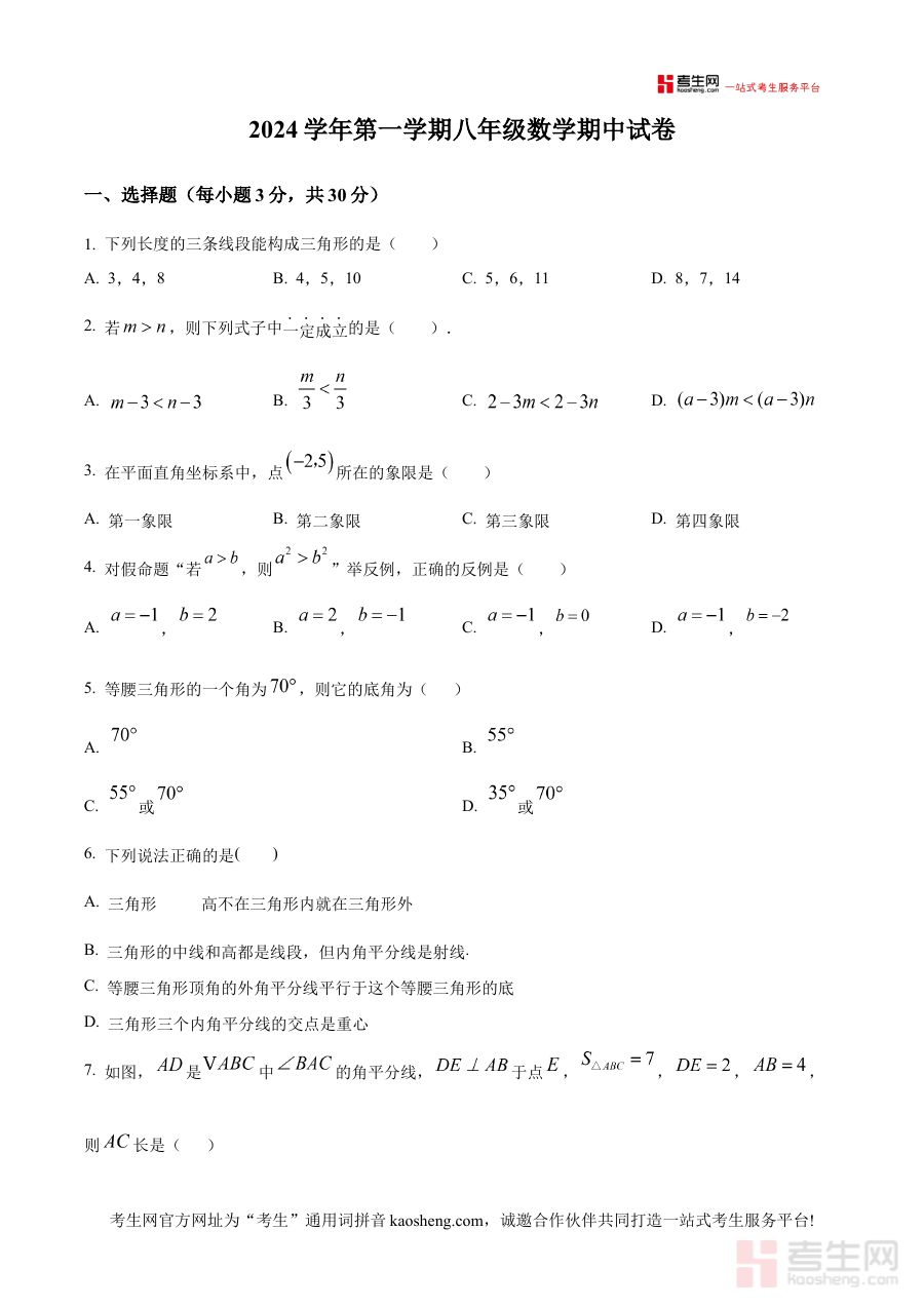 《精品解析:浙江省宁波市波海曙区(东恩、实验等)2024-2025学年上学期八年级联考 数学期中试卷 (原卷版)》是针对2024-2025学年上学期浙江省宁波市海曙区东恩、实验等学校联合举办的八年级数学期中考试的备考资料,原卷版形式还原了考试的原始结构与呈现方式,为使用者提供贴近真实考试场景的参考载体。