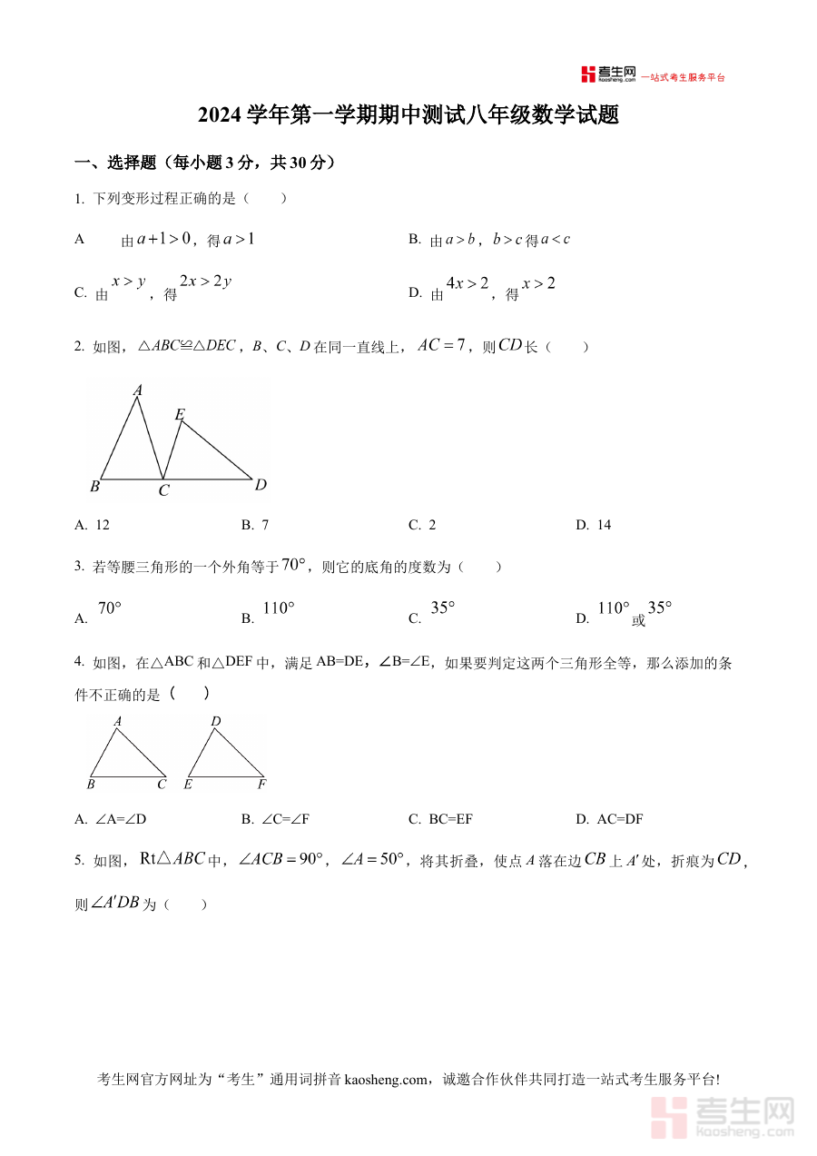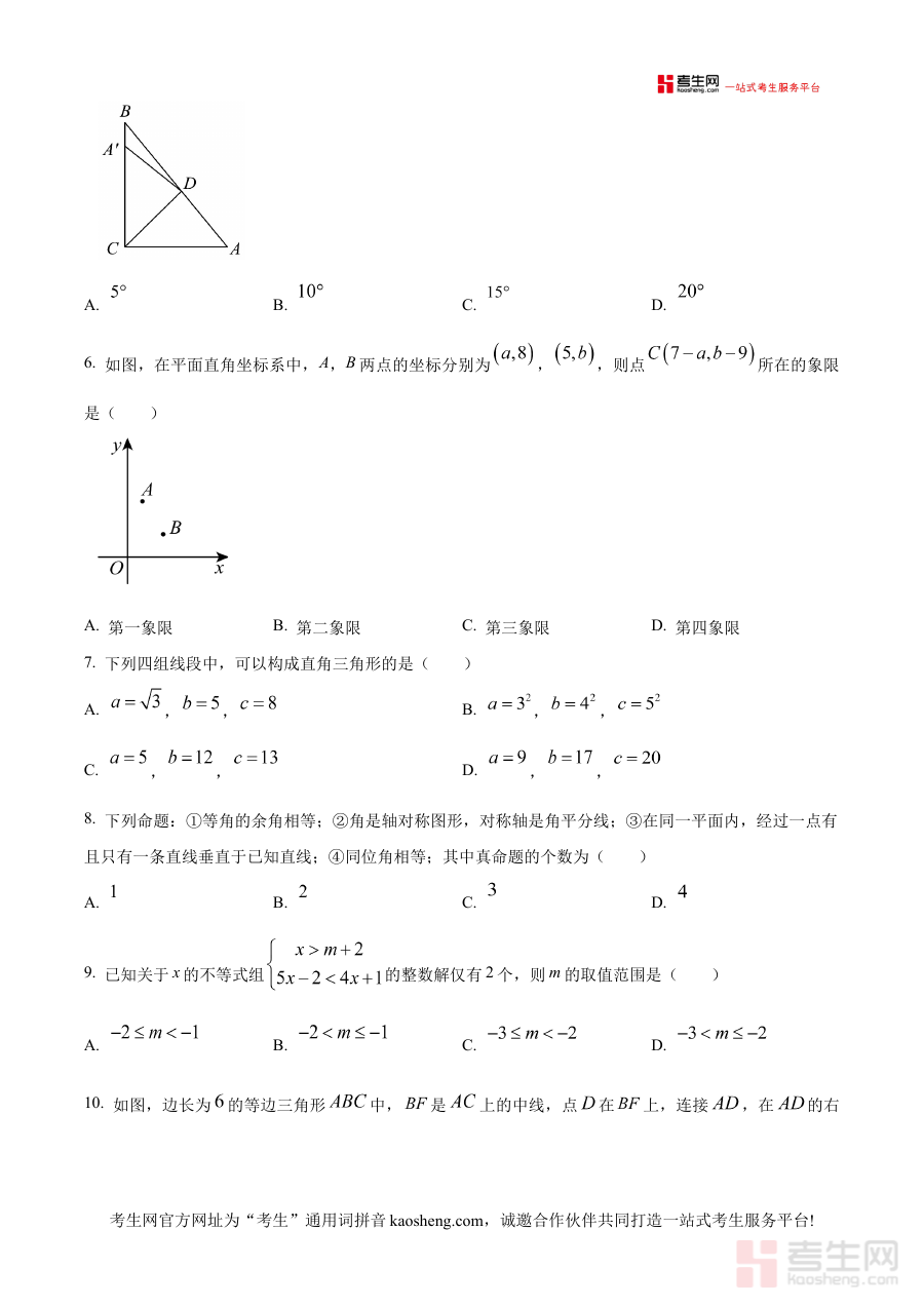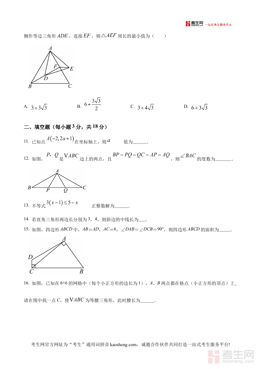 《精品解析:浙江省宁波市海曙区储能学校2024-2025学年上学期期中考试八年级数学试卷 (原卷版)》是针对浙江省宁波市海曙区储能学校2024至2025学年上学期八年级数学期中考试的备考资料,精准对应该学校该学年该阶段的数学考试场景,为相关学习者提供贴合实际考试环境的参考材料。