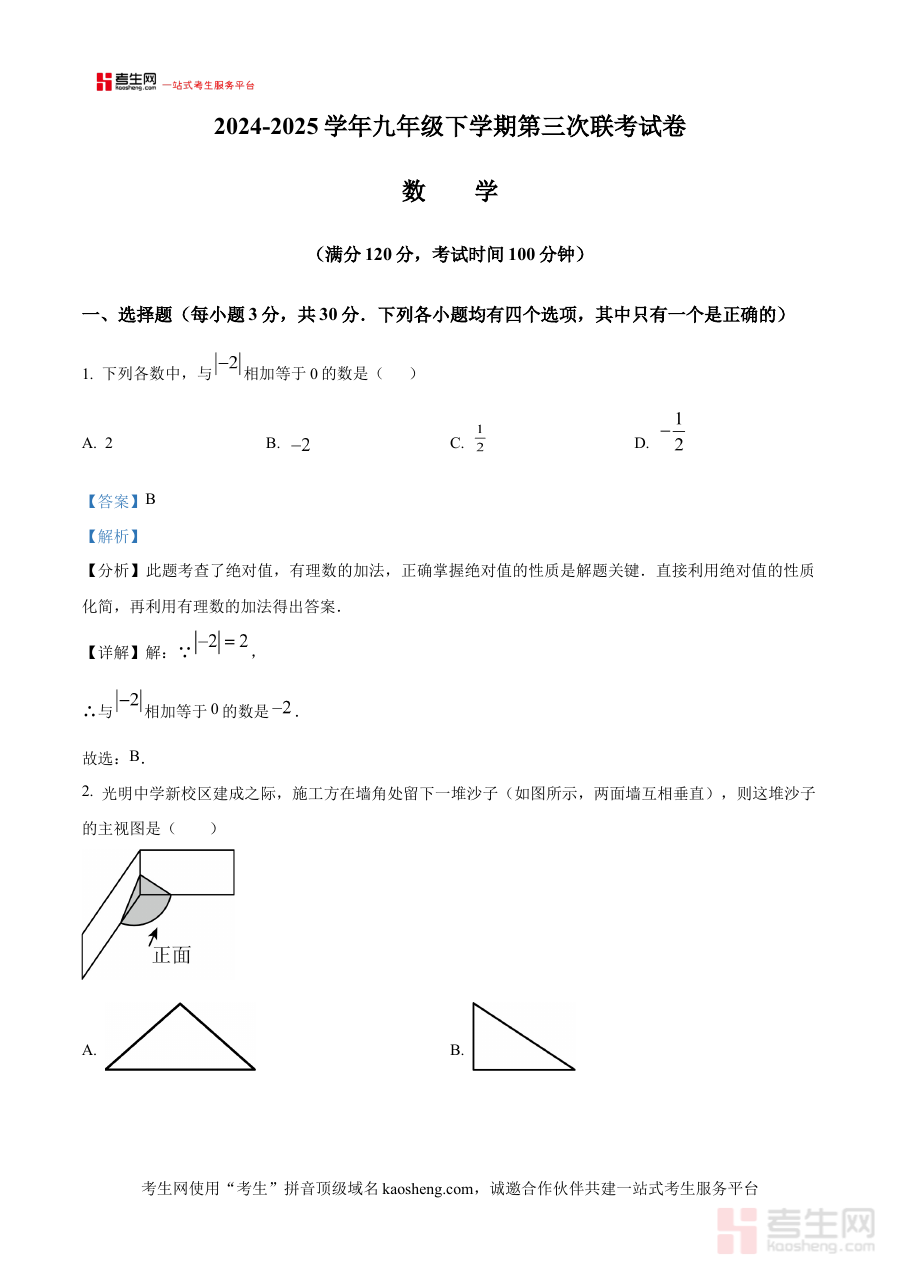 《精品解析:河南省郑州市中牟县2024-2025学年九年级下学期第三次联考数学试题试卷(解析版)》是针对河南省郑州市中牟县2024-2025学年九年级下学期第三次联考数学科目的专业备考资料,依托该地区该学年特定阶段的联考资源,为相关师生提供具有针对性的内容支持。
