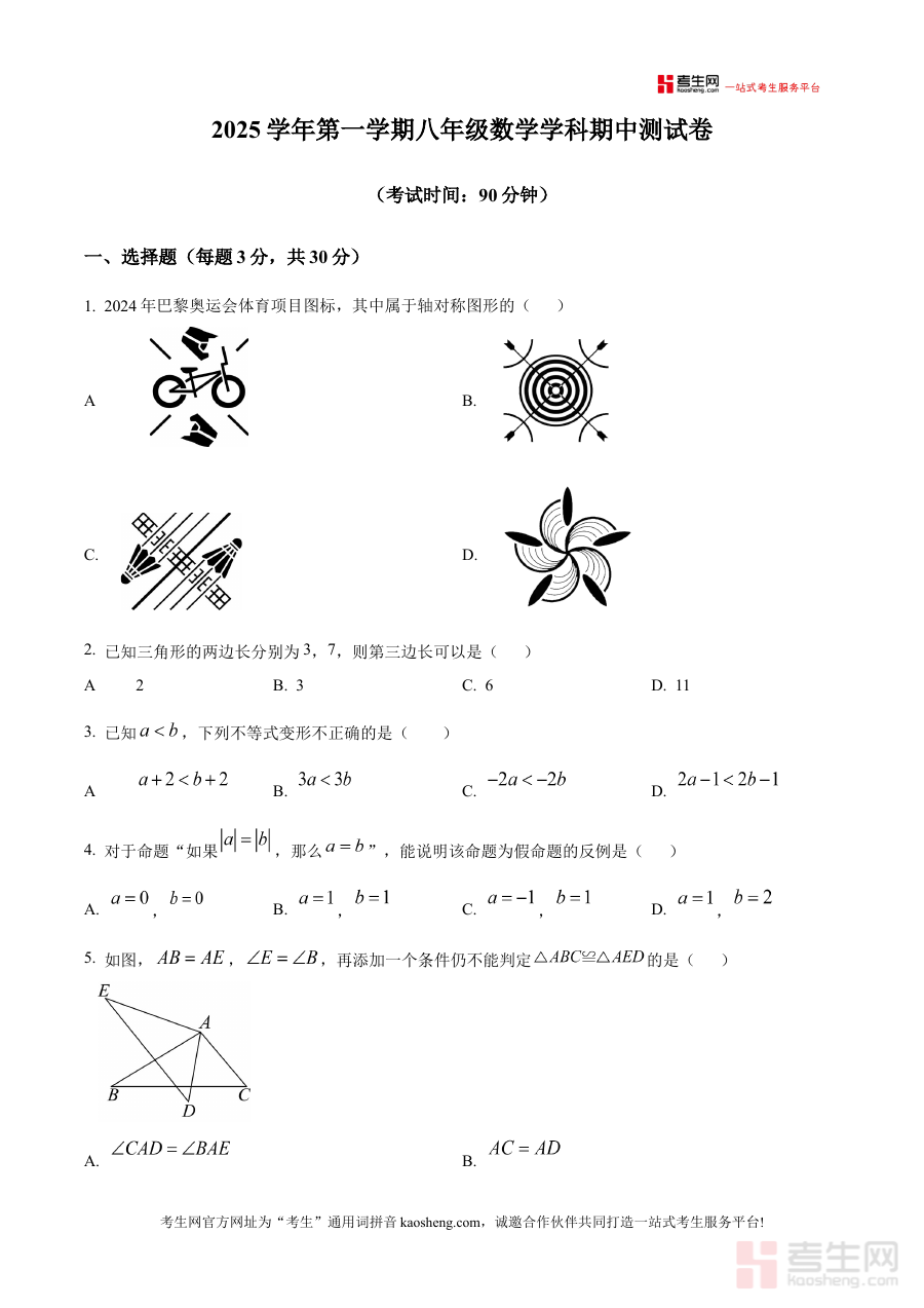 《精品解析:浙江省宁波市鄞州区十三校2025-2026学年八年级上学期11月期中数学试题(原卷版)》是针对2025-2026学年浙江省宁波市鄞州区十三校联合举办的八年级上学期11月期中数学考试所编制的原始试卷资料,属于初中数学阶段性考试的核心备考资源之一,能够为使用者提供该次区域联合考试的真实试卷原貌,是了解该区域同期数学考试命题方向、考查形式及试卷结构的重要参考材料。