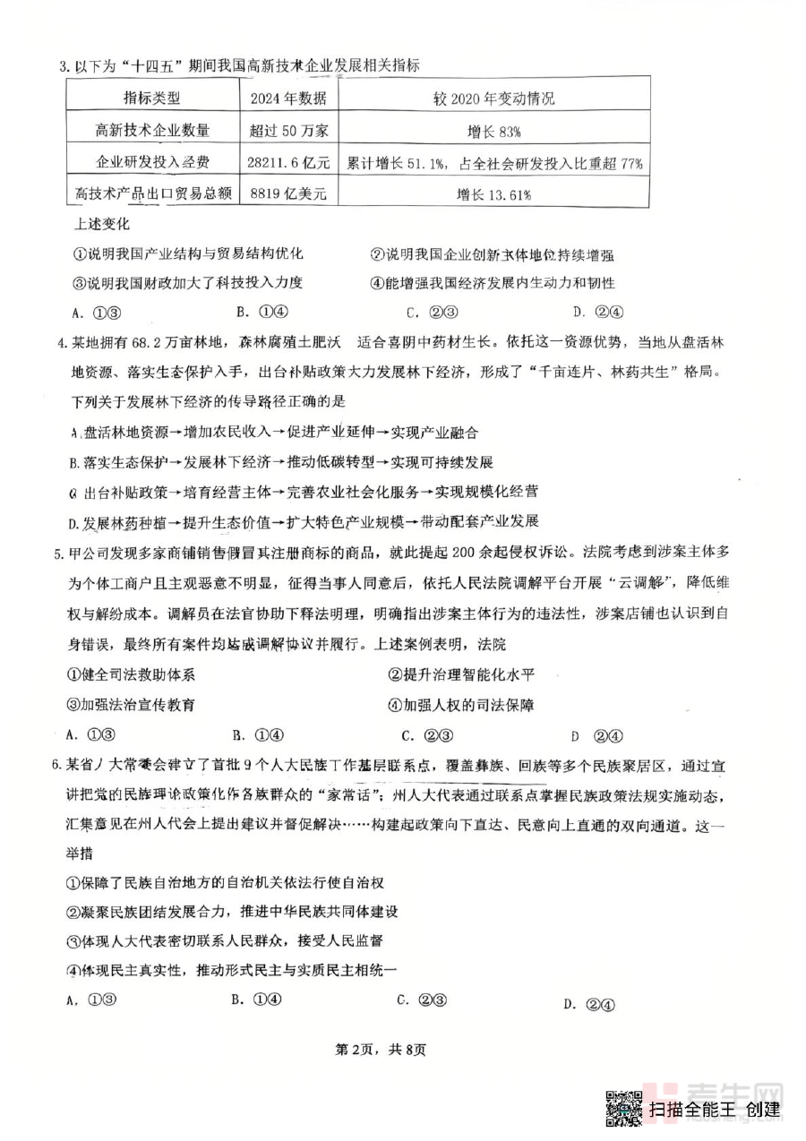 该资料主要用于高三政治学科的学情诊断与阶段检测工作,能够帮助教师精准把握学生在高三初始阶段对政治核心知识的掌握程度、知识体系的构建情况以及基本解题能力水平。同时,它也为学生提供了自我评估的有效途径,助力学生清晰认知自身学习中的优势与薄弱环节,进而辅助师生共同制定更具针对性的备考方案,为后续系统复习和能力提升明确方向。