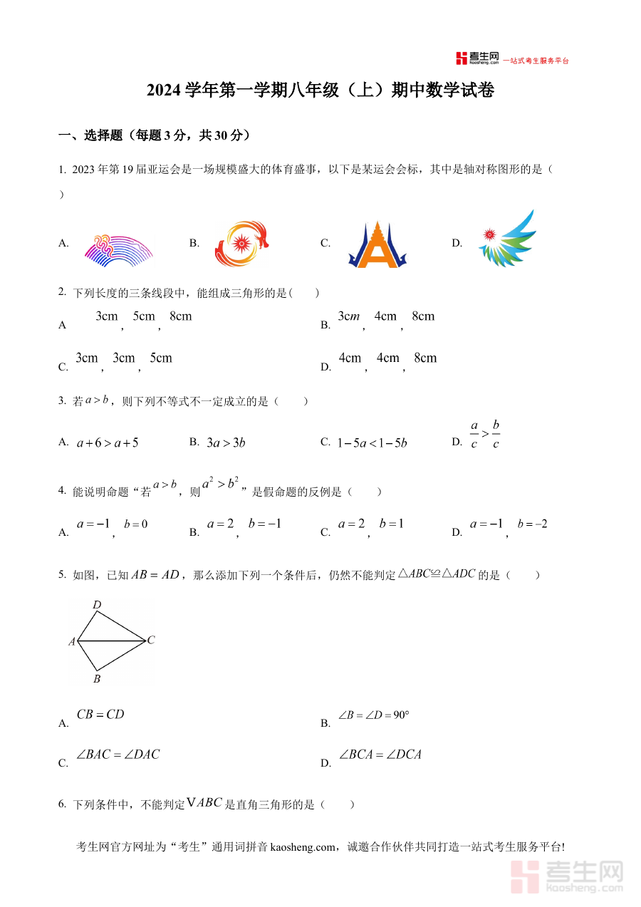 《精品解析:浙江省宁波市鄞州区宋诏桥中学,钟公庙中学等十三校2024-2025学年上学期期中联考八年级数学试卷(原卷版)》是针对2024-2025学年上学期浙江省宁波市鄞州区十三校八年级数学期中联考的备考资料,聚焦该地区多所学校联合组织的期中阶段考试需求,为师生提供贴合本地联考实际的参考素材。