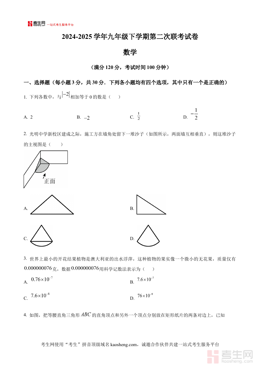 《精品解析:河南省郑州市管城区2024-2025学年九年级下学期第二次联考数学试题试卷(原卷版)》是聚焦河南省郑州市管城区特定学年与考试阶段的数学学科备考资料。其对应2024-2025学年九年级下学期的第二次区域联考,紧密贴合管城区本地的数学教学进度与联考命题导向,为九年级学生提供了与区域考试直接匹配的练习资源,助力学生熟悉联考的考试形式与内容框架。