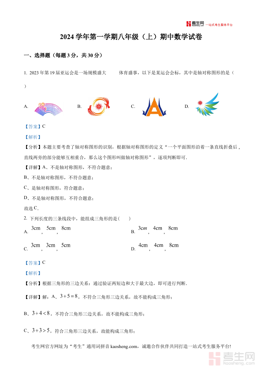 此资料适用于参与本次十三校期中联考的八年级学生、数学教师及教学管理者,其解析内容有助于学生查漏补缺提升学习效率,也能为教师优化教学策略和学生备考规划提供实用依据,助力实现阶段学习目标。